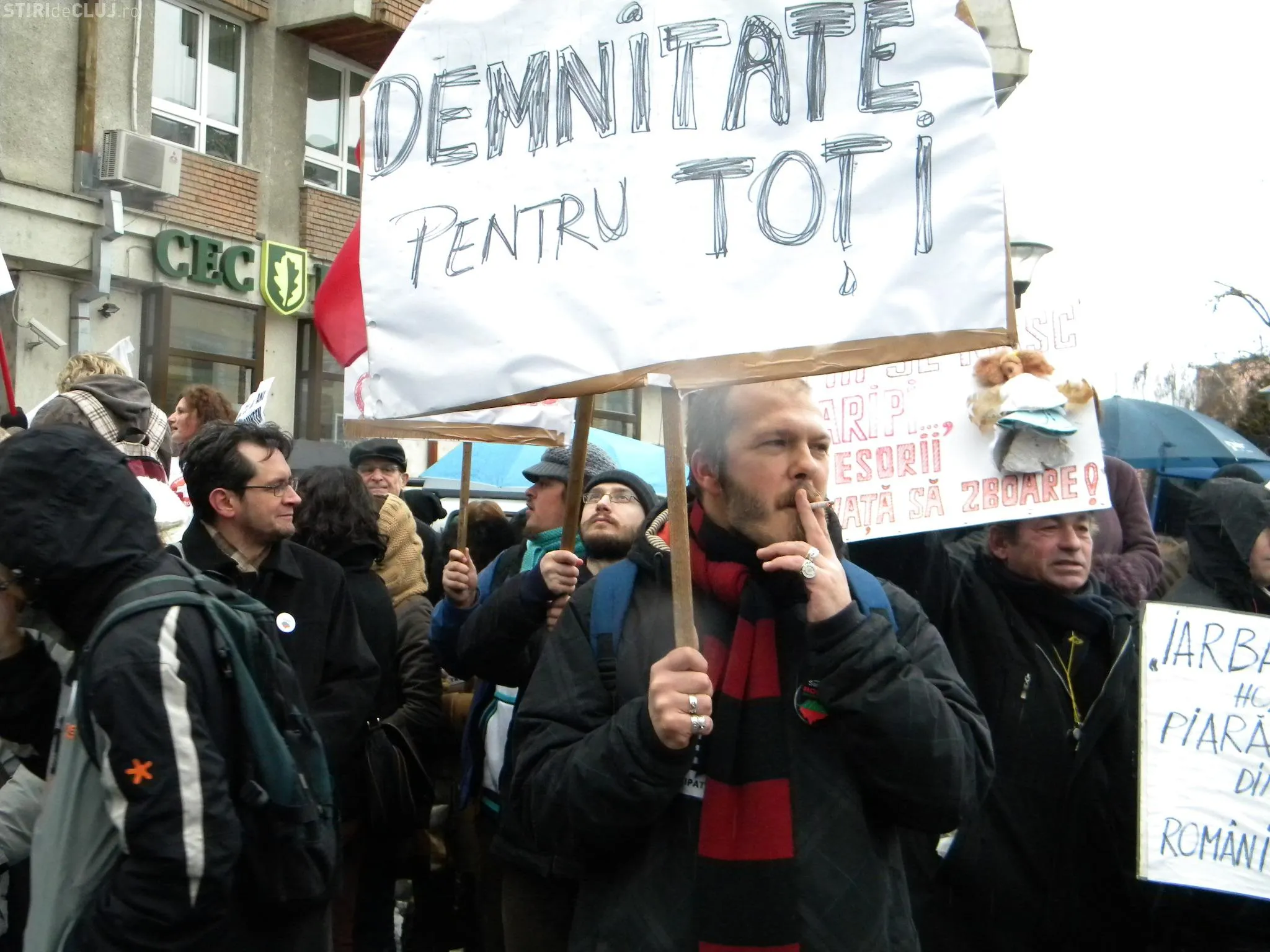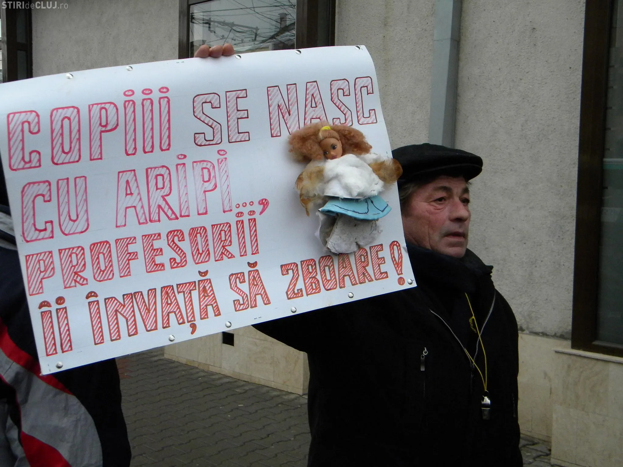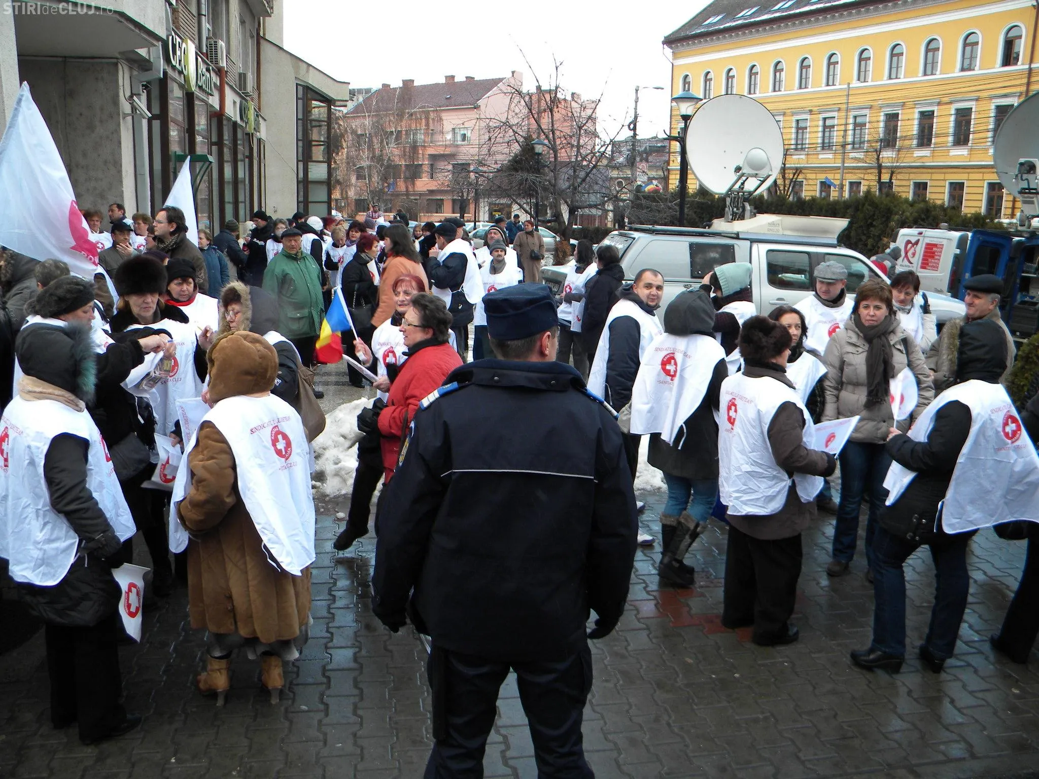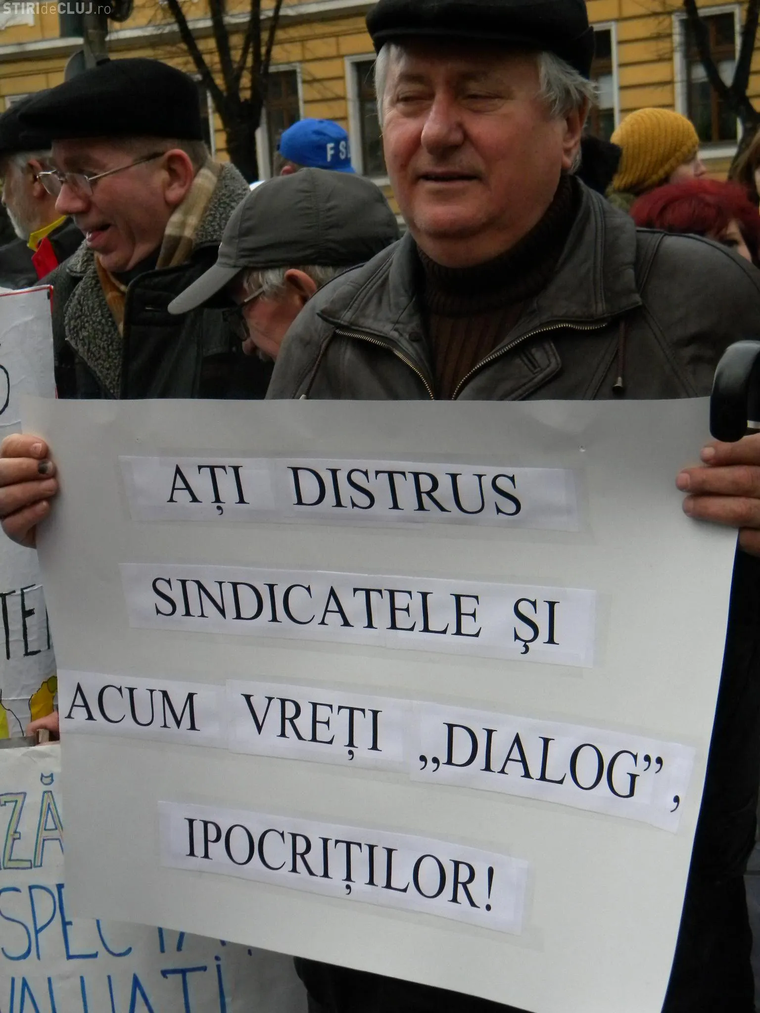Sindicalistii din educatie si sanatate, in fata Prefecturii Cluj: "Poporu' suntem noi, viermii sunteti voi!" VIDEO