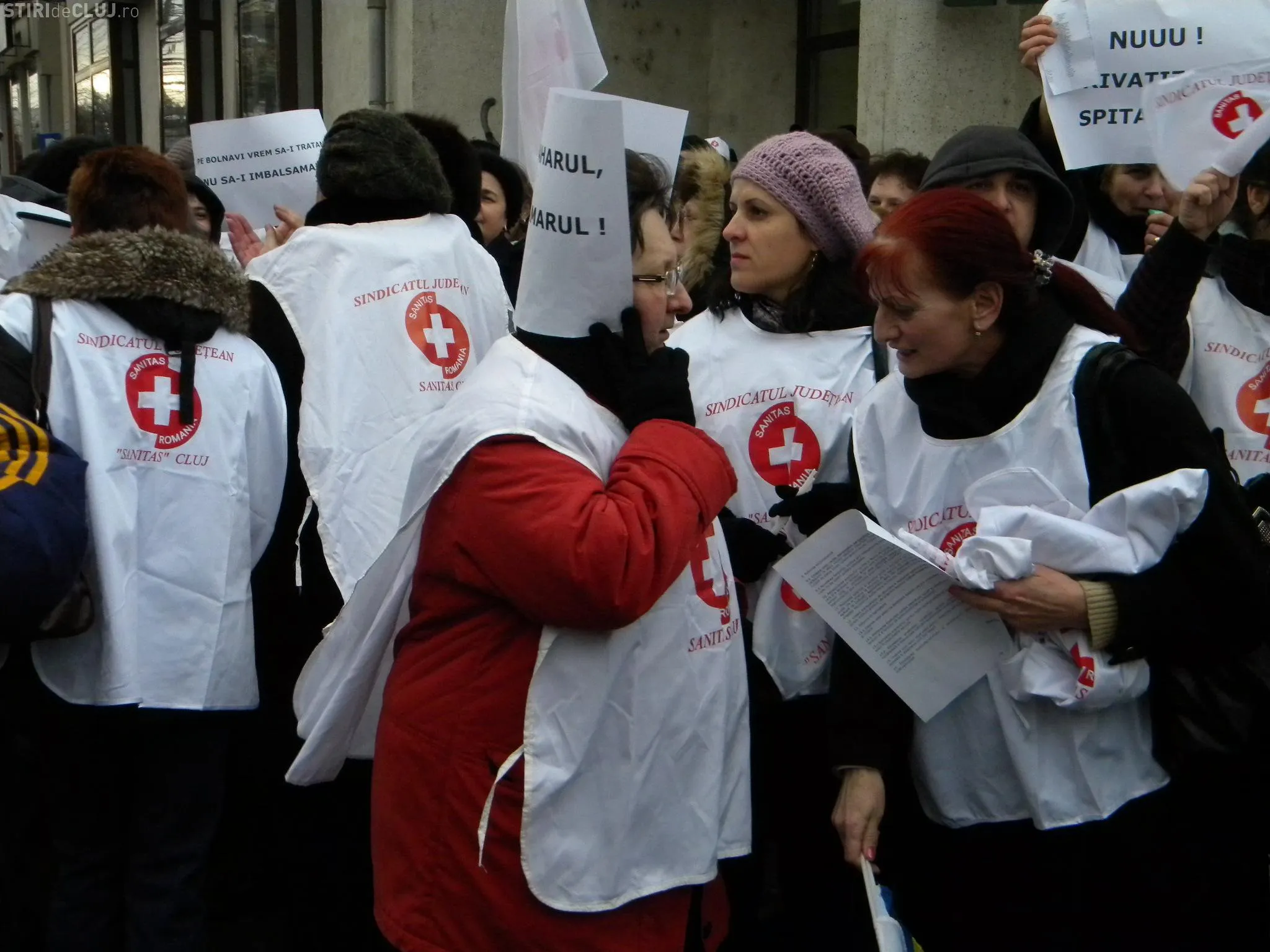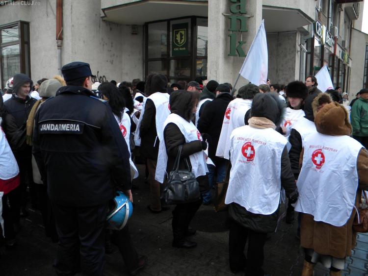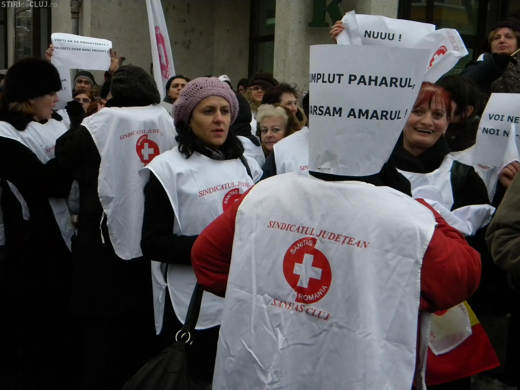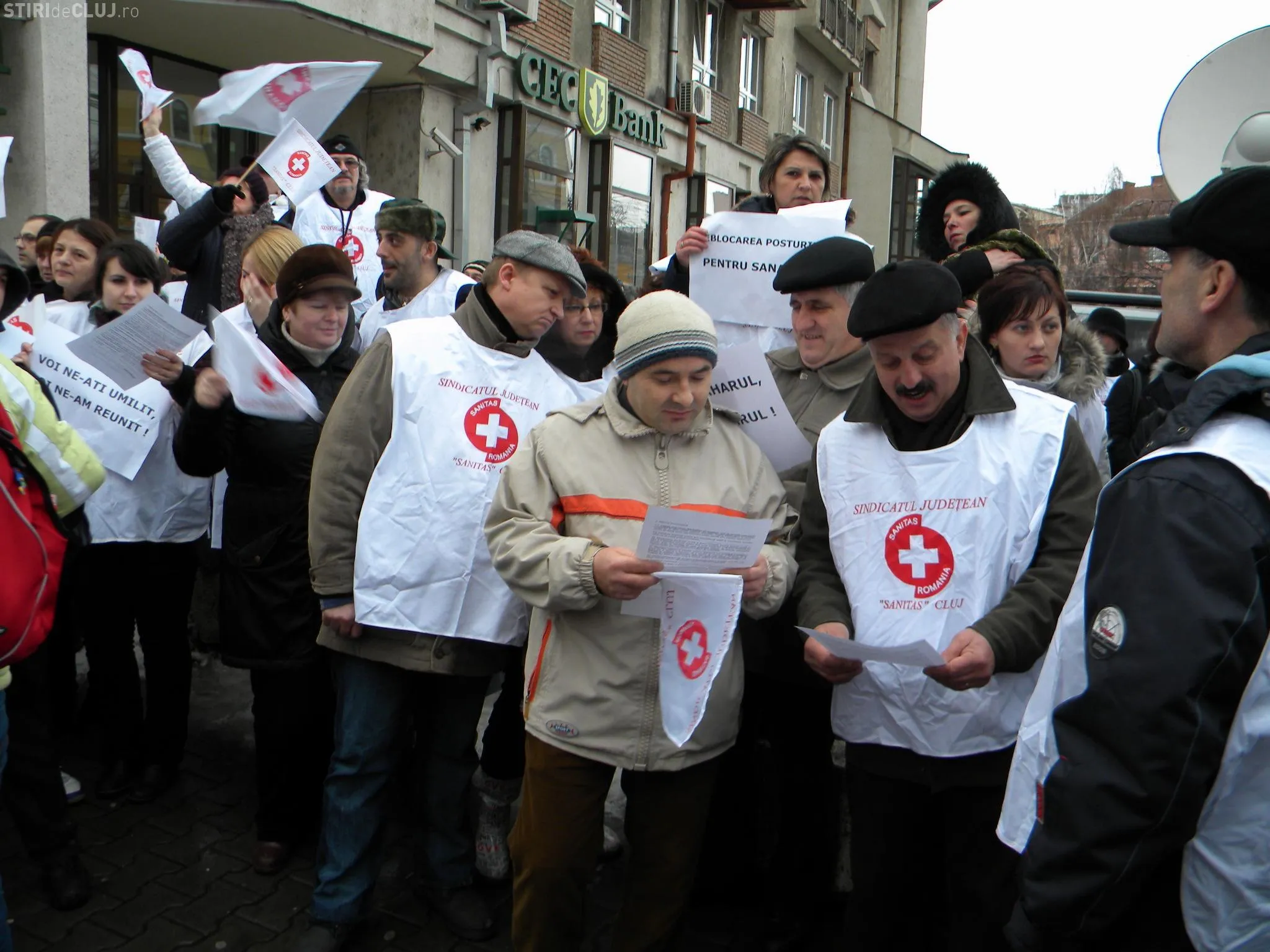 Sindicalistii din educatie si sanatate, in fata Prefecturii Cluj: "Poporu' suntem noi, viermii sunteti voi!" VIDEO