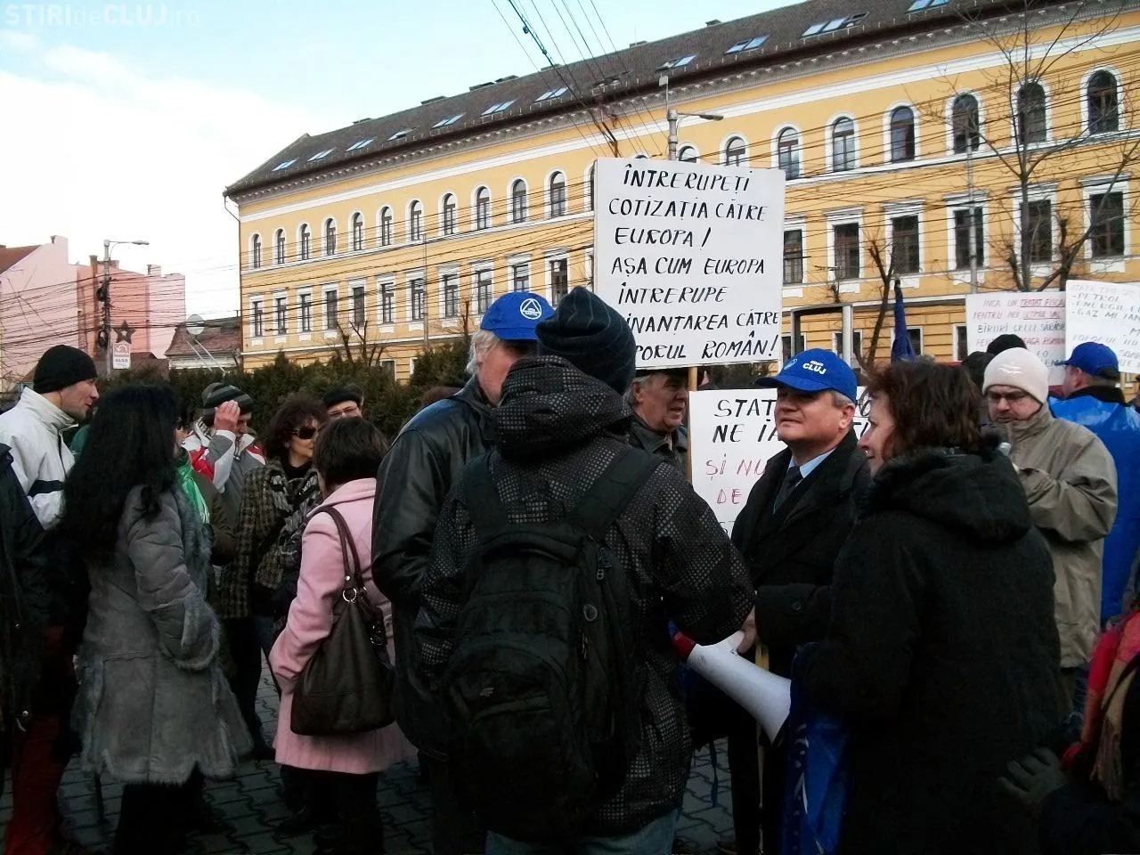 Sindicalistii, nemultumiti de noile reglementari fiscale, au pichetat Prefectura Cluj VIDEO