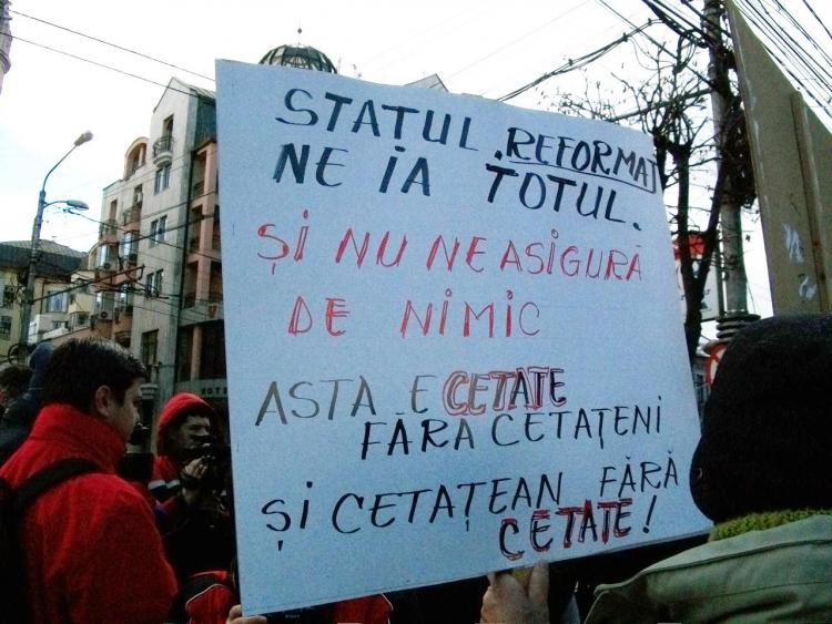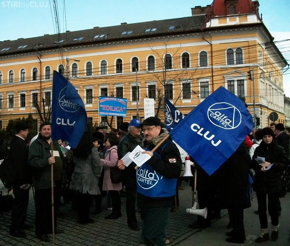 Sindicalistii din Cluj au iesit miercuri, 29 februarie, incepand cu ora 14:00 in strada si au pichetat Prefectura Cluj.