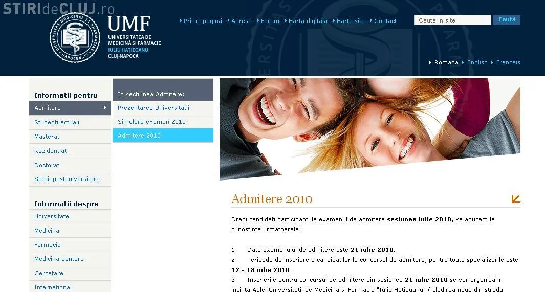 Site -ul UMF Cluj este blocat din cauza numarului mare de accesari facute de cei care vor sa vada rezultatele de la examenul de admitere 2010. Notele trebuiau afisate de la ora 8.00, asa cum au anuntat oficialii UMF.