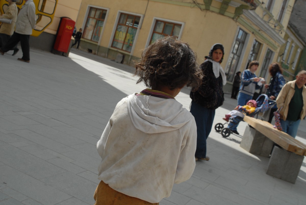 Situație alarmantă la Cluj! Copilași, surprinși la cerșit în fața magazinelor din oraș. De multe ori sunt lăsați singuri cu orele