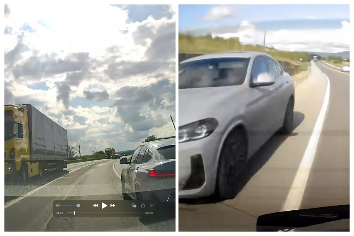 Un șofer aflat la volanul unui BMW a fost filmat pe ruta Gherla – Cluj făcând o manevră periculoasă. Aflat la distanță mică de ieșirea din Gherla spre Cluj, acesta a ales să depășească pe acostament, pe un sector de drum cu linie continuă, unde depășirea era interzisă. Din sens opus veneau mașini, iar șoferul, neavând răbdare, a decis să depășească prin dreapta, luând-o total prin suprindere pe șoferița pe care a depășit-o.