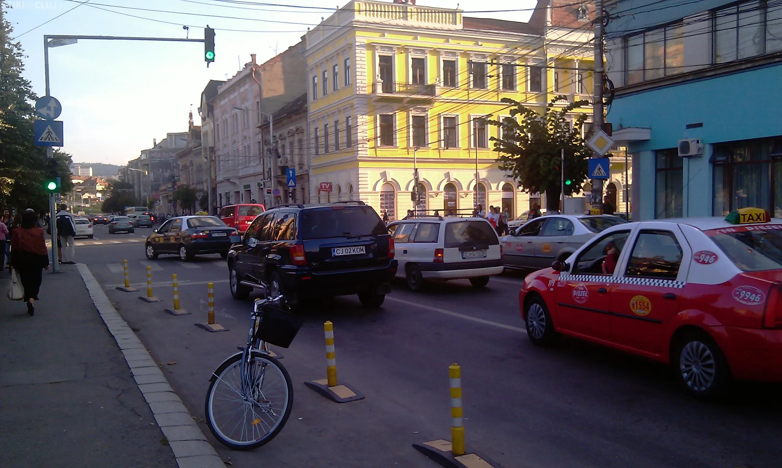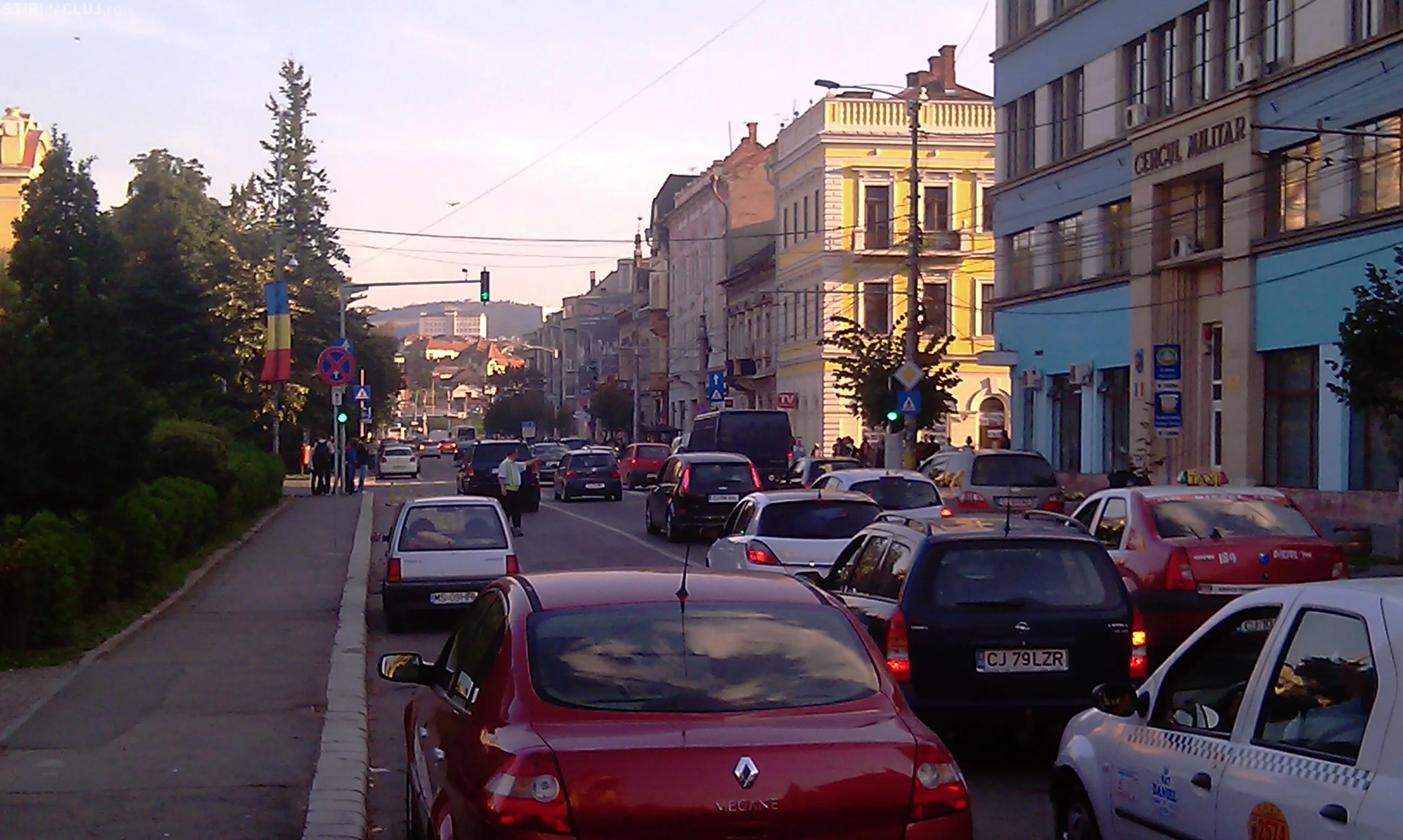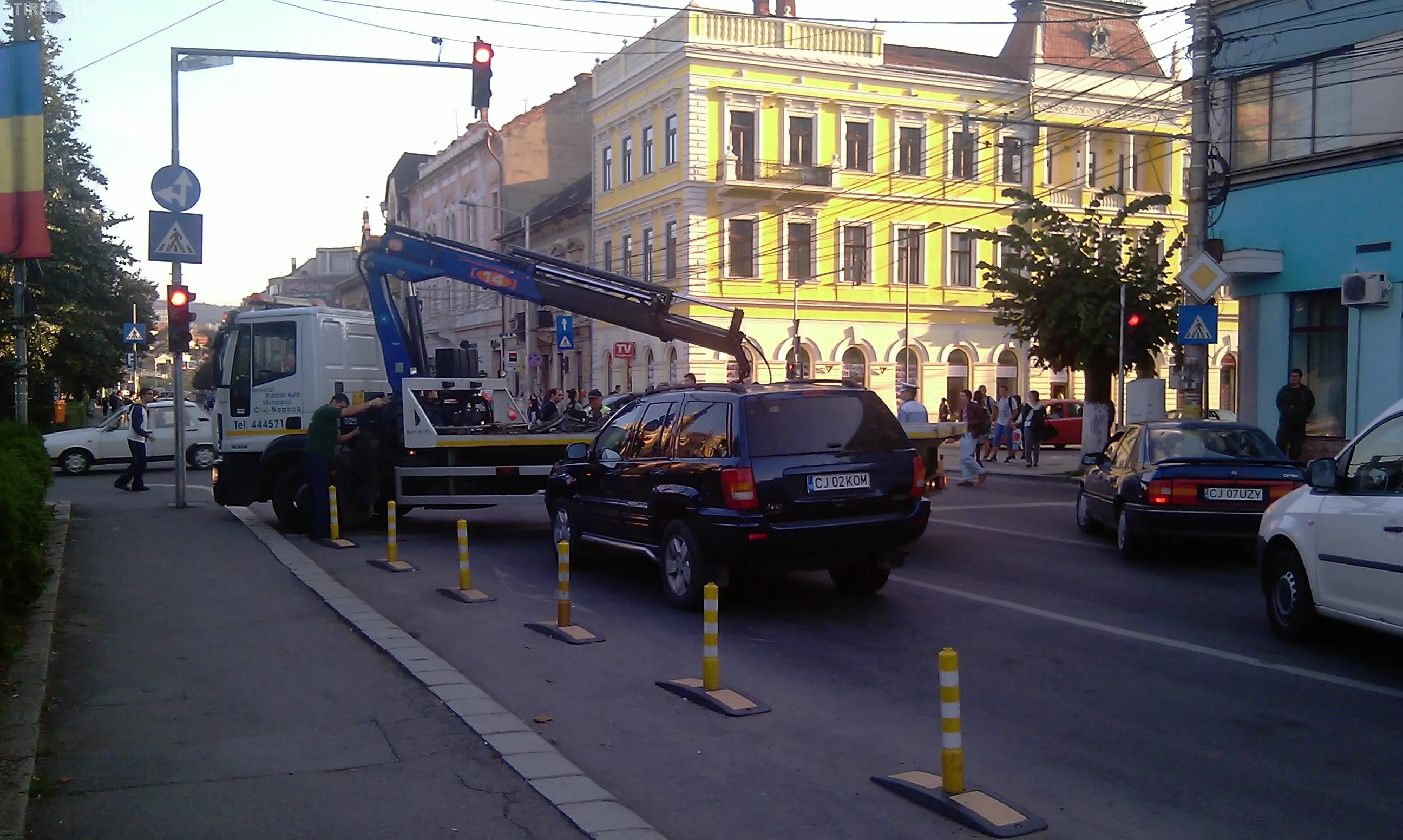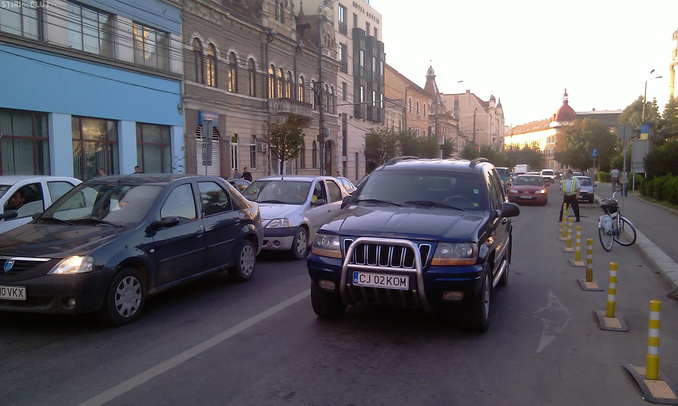 Autoturismul marca Jeep, cu numarul CJ 02 KOM a fost "parcat" pe prima banda de mers la cativa metri de intersectia cu Bulevardul Eroilor. Soferul nici macar nu a pus avariile si a disparut, iar politia comunitara a fost chemata de un sofer care si-a pierdut rabdarea.