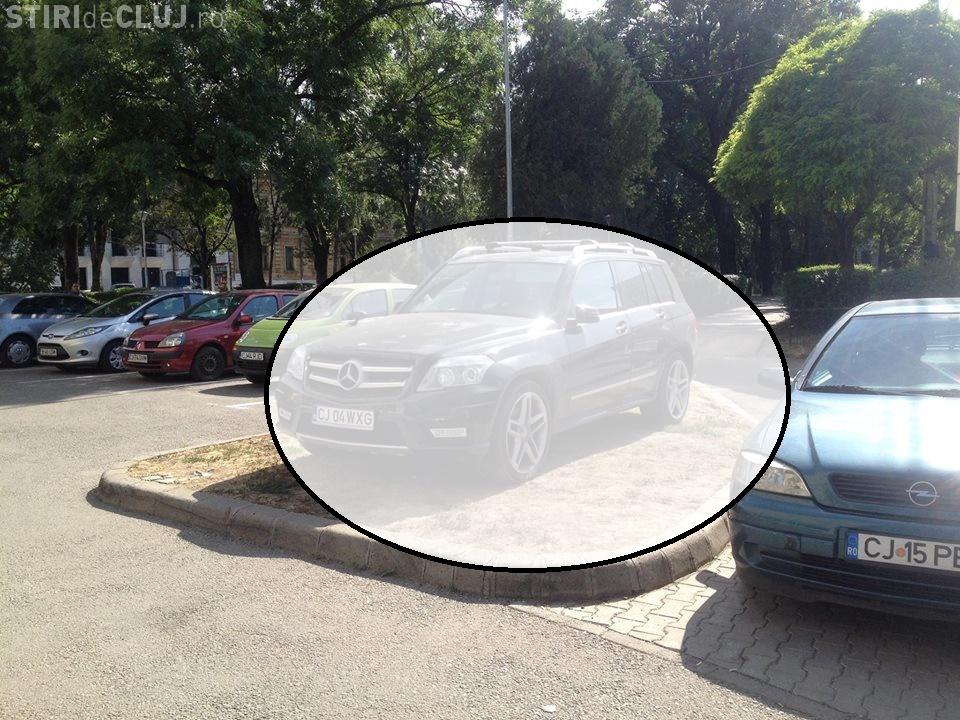Șoferul unui Mercedes se include fără probleme în categoria ”șmecheri”, parcând direct pe spațiu verde.