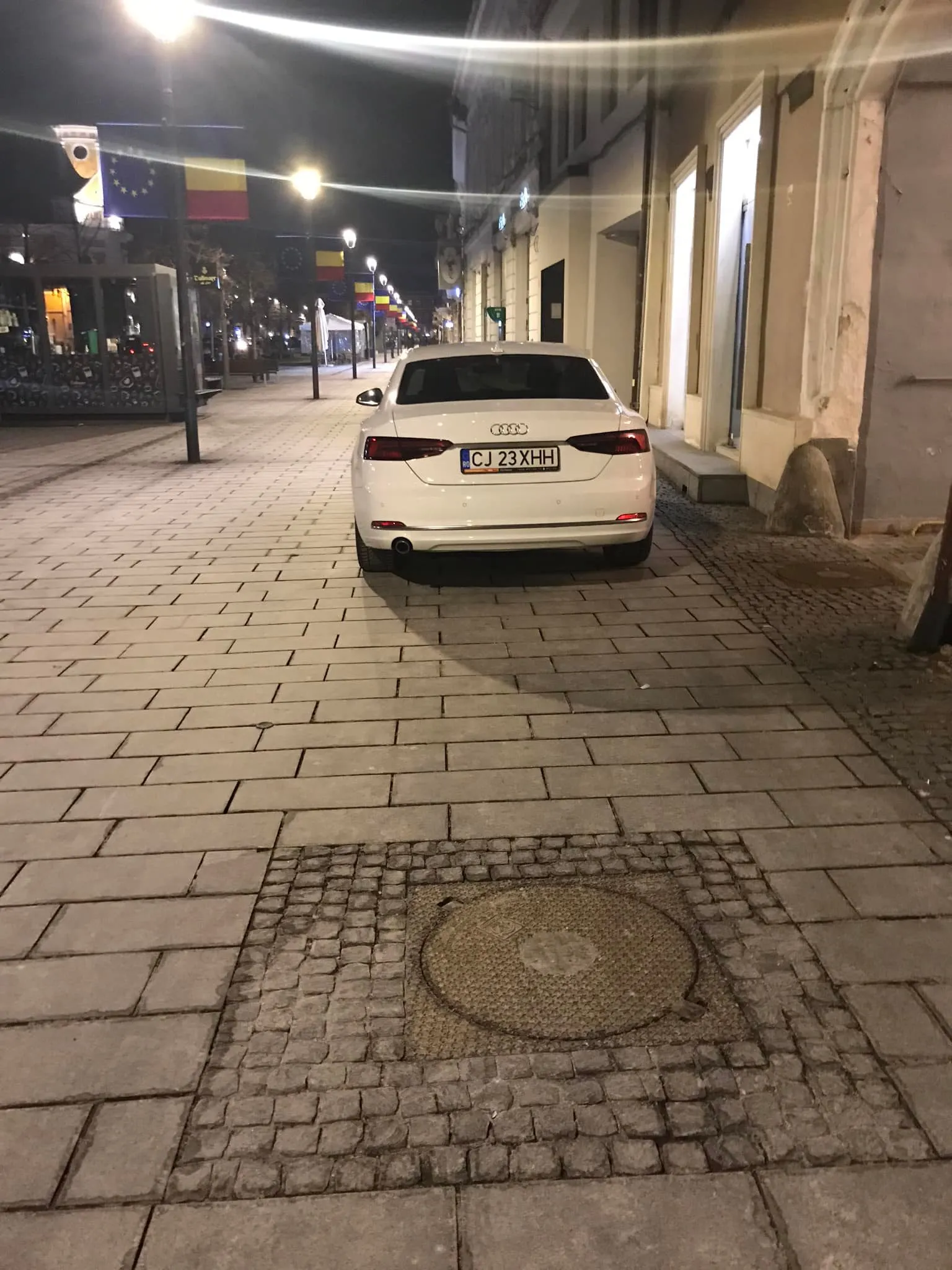 Un șmecheraș a confundat pietonala de pe Bualevardul Eroilor cu propria parcare, vineri seara.