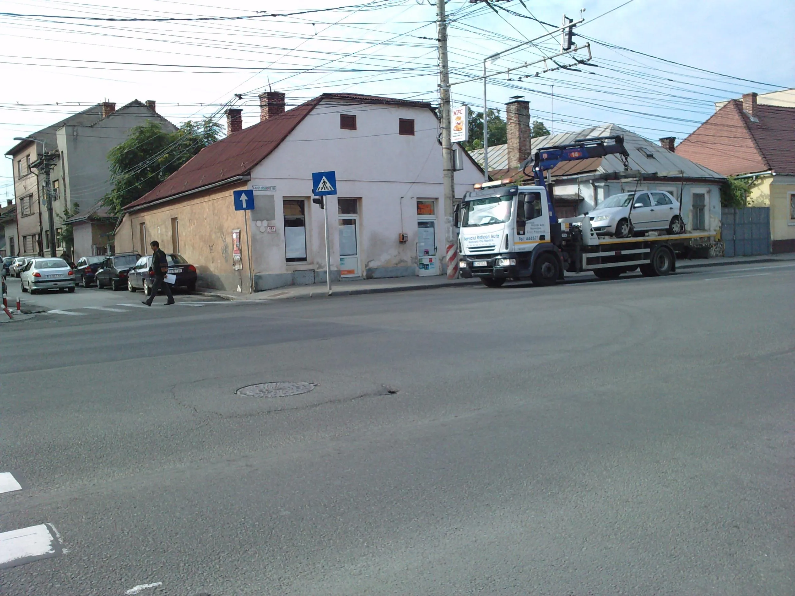 Masina era pe Bulevardul 21 Decembrie, care este cu sens unic dinspre Marasti spre centru, in sens opus avand voie sa circule doar troleibuzele. Angajatii serviciului de ridicari auto, tocmai "saltasera" masina unui clujean care parcase neregulamentar.