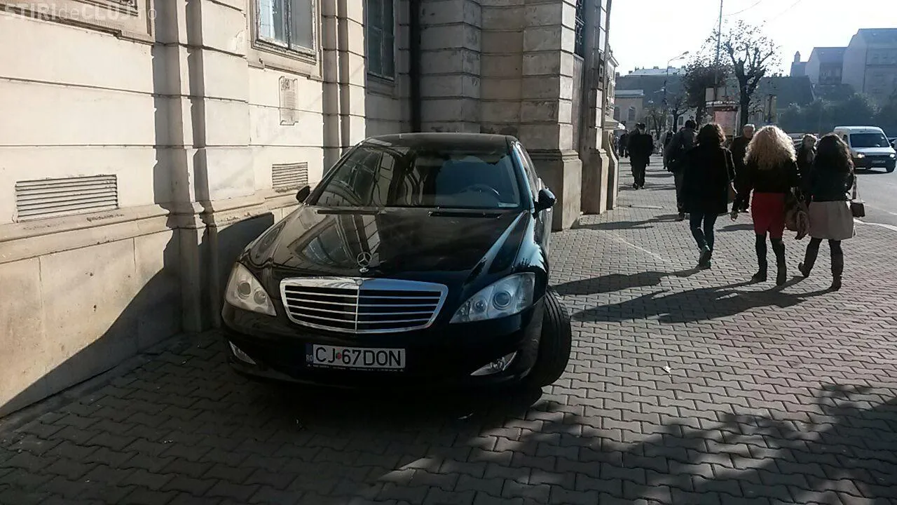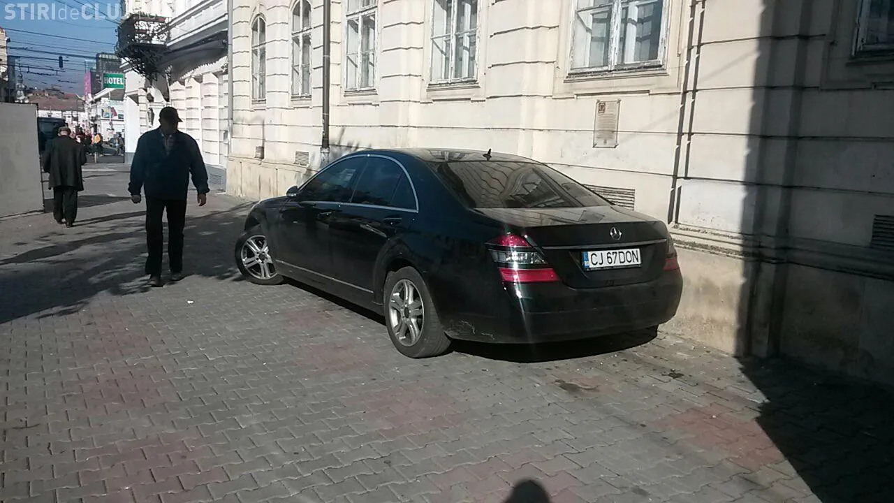 Un clujean a surărins cum un șofer și-a lăsat bolidul de lux, un Mercedes S Classe, parcat, fără nicio jenă, pe trotuar, la hotelul Melody.