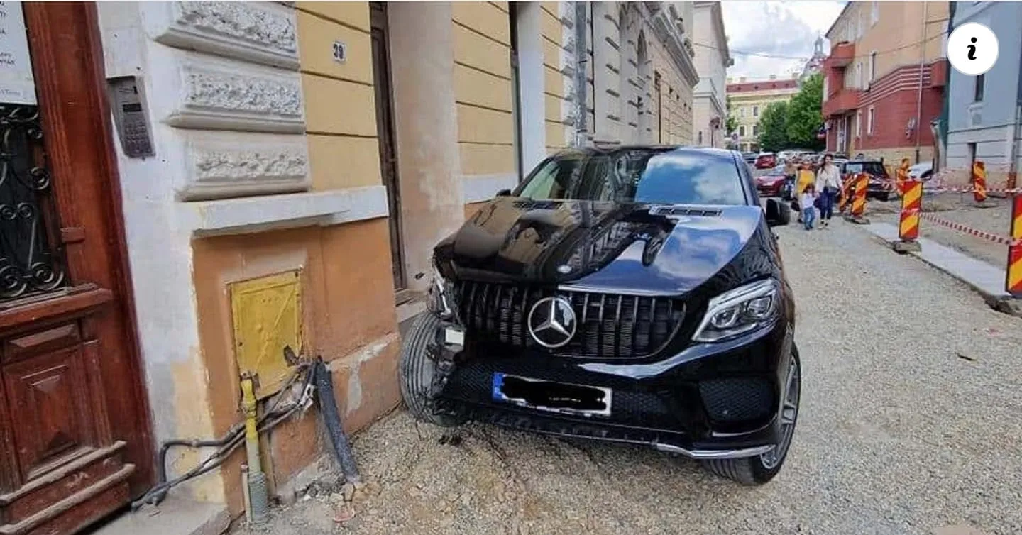 Conducătorul autoturismului cu numere de Brașov a lovit mai multe mașini parcate, iar apoi a abandonat mașina în fața unei porți. Un clujean nu a mai putut intra în casă și a chemat Poliția Locală.