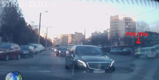ȘMECHERUL cu tanc Mercedes nu e oprit de Poliție la Cluj. Agentul clatină din cap - VIDEO