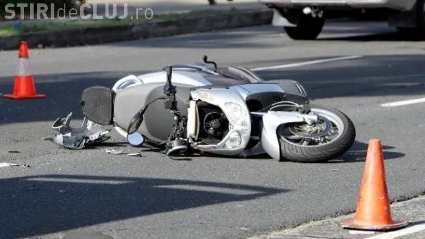 Șofer beat la Cluj! S-a urcat beat pe scuter și a lovit un autoturism