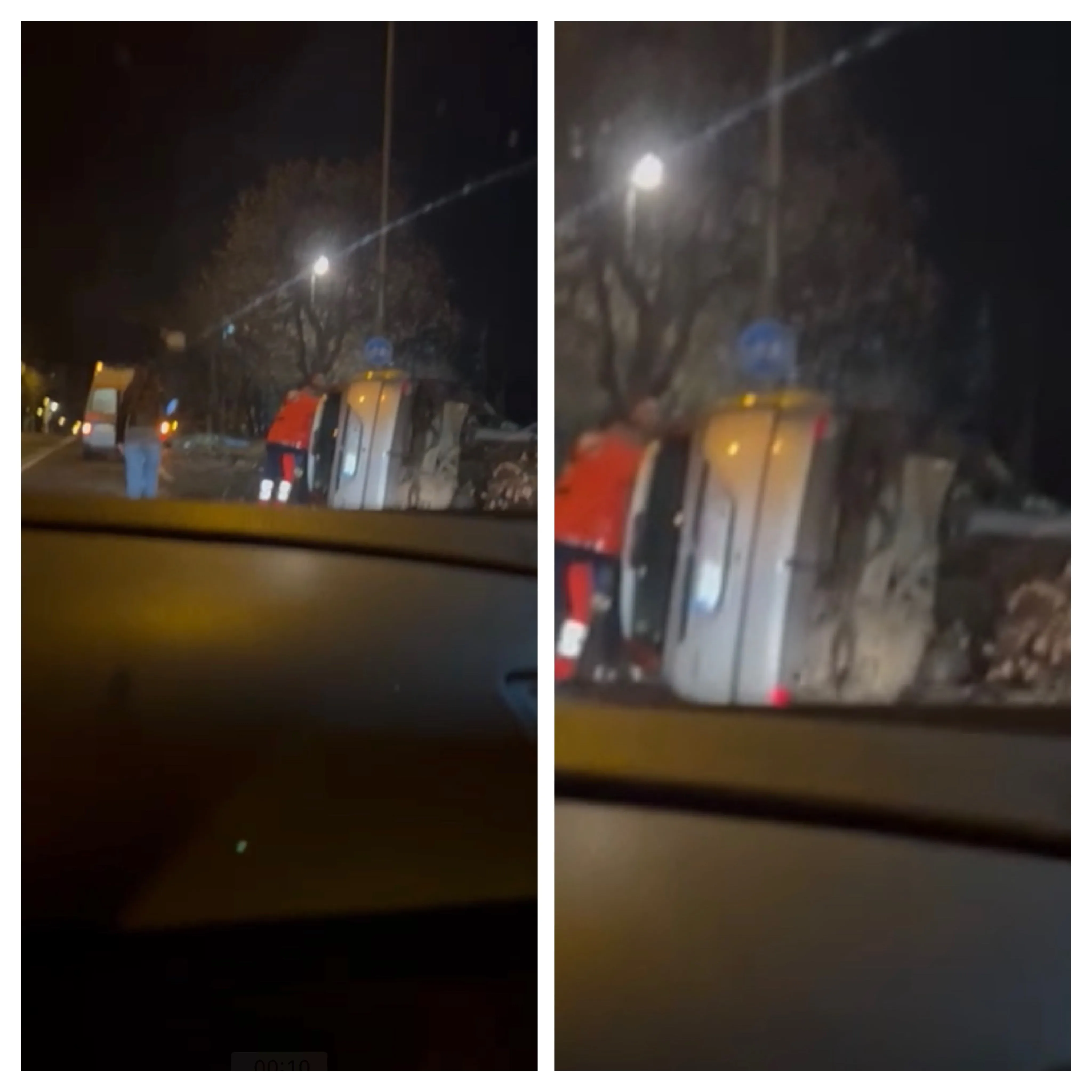 Șofer beat și singur pe drum s-a răsturnat cu mașina strada Bucium, din Mănăștur - VIDEO