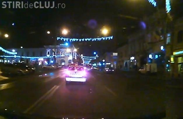 Un șofer clujean a filmat în Piața Unirii momentul în care un echipaj de poliție făcea semn șoferului unei dube de jandarmeri că ”e ok să încalce legea”.