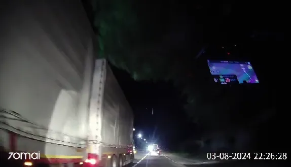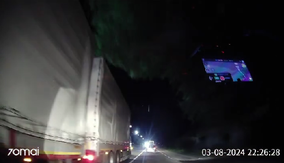 Acesta se angajează într-o depășire riscantă, pe linie continuă, pentru a depăși o mașină, cu toate că tir-ul are o lungime mare, având două remorci atașate. Din parte opusă se pot observa mai multe flash-uri destinate șoferului polonez.