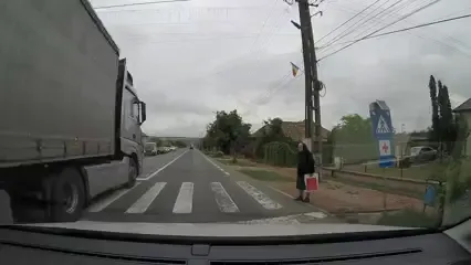 Practic, șoferul de TIR a venit lansat, cu viteză extrem de mare, a intrat pe zona hașurată, nemaiputând opri la timp. Norocul a fost că bătrânica aflată la trecere nu a traversat până când șoferul nu a trecut.