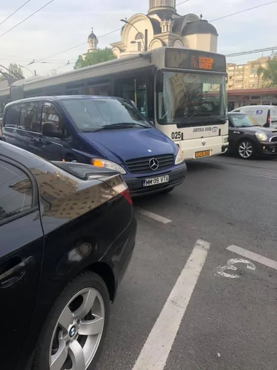 O dubă cu numere de Maramureș era parcată pe prima bandă de circulație și îngreuna traficul.