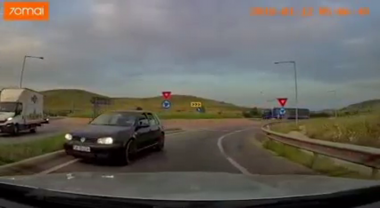 Șoferul a dat ”bot în bot” cu un alt autoturism, dar acest lucru nu l-a făcut să se întoarcă, ci a intrat pe spațiul verde și s-a strecurat mai departe. Este posibil să fi trecut peste spațiul verde pentru a ajunge pe drumul regulamentar.