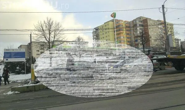 ”In jurul orei 16:30 am vazut scena din imagini. Probabil a incercat o depasire pe liniile de tramvai si nu a mai putut-o redresa inainte de escuarul statiei”, ne-a scris clujeanul, care a realizat și fotografiile.