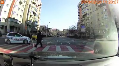 Scena a fost filmată de un șofer cu camera pe bord la trecerea de pietoni de la intersecția Calea Dorobanților / strada Ioan Alexandru. Conducătorul auto nu le-a acordat prioritate pietonilor, iar un echipaj de poliție situat în apropiere a pornit în urmărirea acestuia și l-a tras pe marginea drumului.