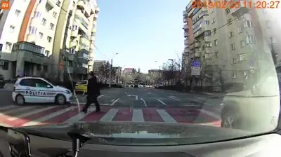 Șofer GRĂBIT lăsat pieton de polițiștii clujeni - VIDEO
