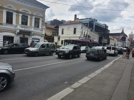 Șofer încătușat în trafic, în centrul Clujului. A călcat un polițist cu mașina pe picior