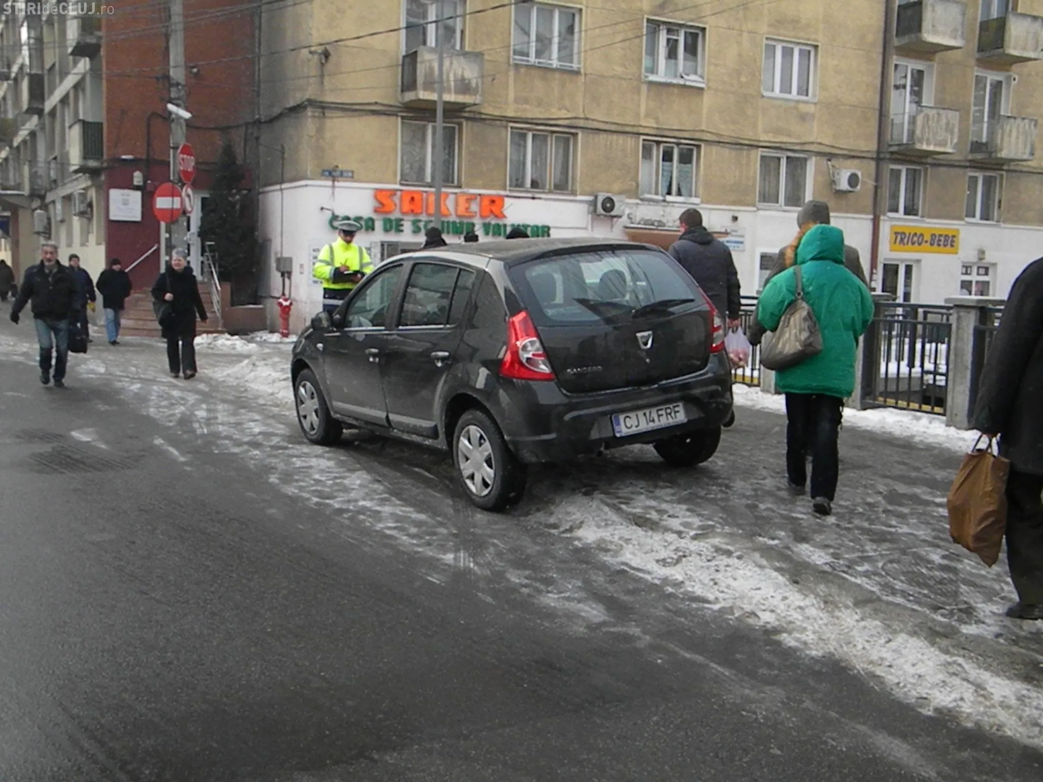 Un sofer si-a parcat masina langa Canalul Morii, pe strada Cuza Voda, cu toate ca la cativa metri erau doua parkinguri, unul privat, de la Hala Agroalimentara, si altul public, in Piata Mihai Viteazu.