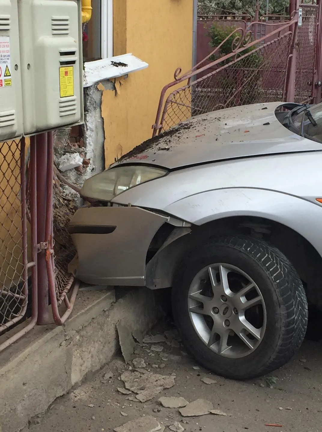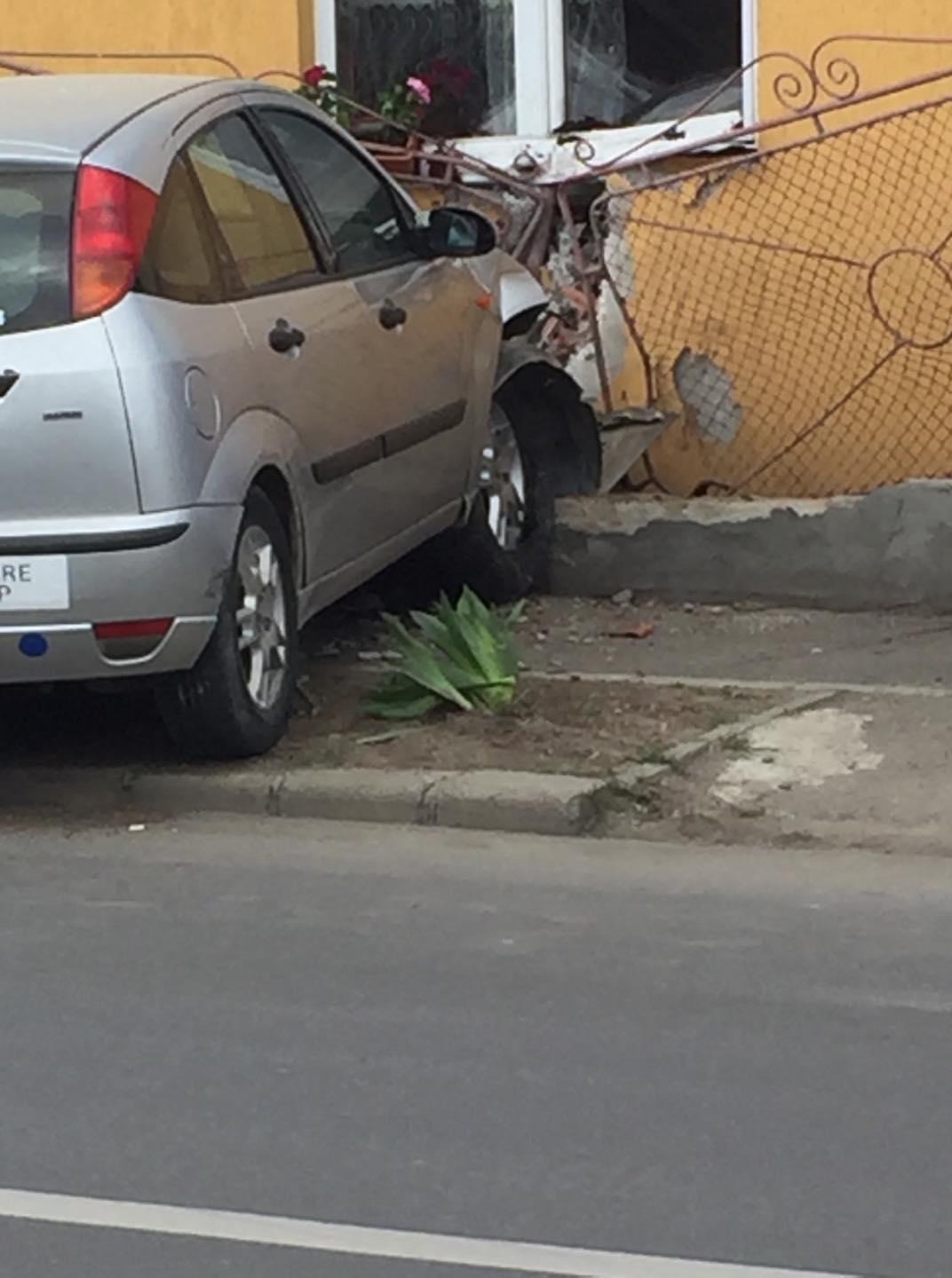 Un șofer care a făcut o depășire neglijentă a intrat într-o casă de pe strada Sobarilor.