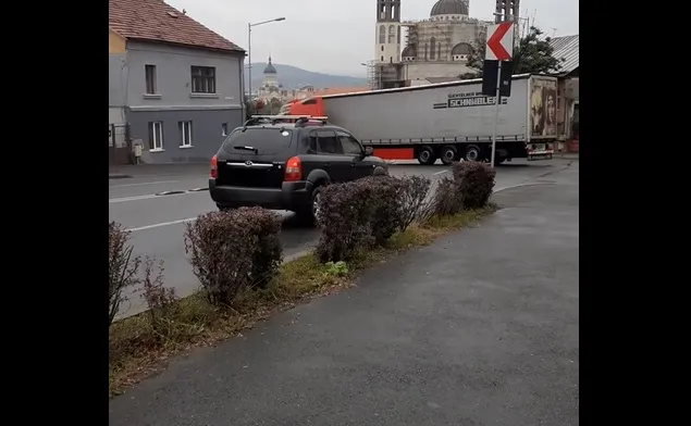 Un șofer de TIR a fost surprins în timp ce efectua o manevră neregulamentară pe Calea Turzii, din Cluj-Napoca.