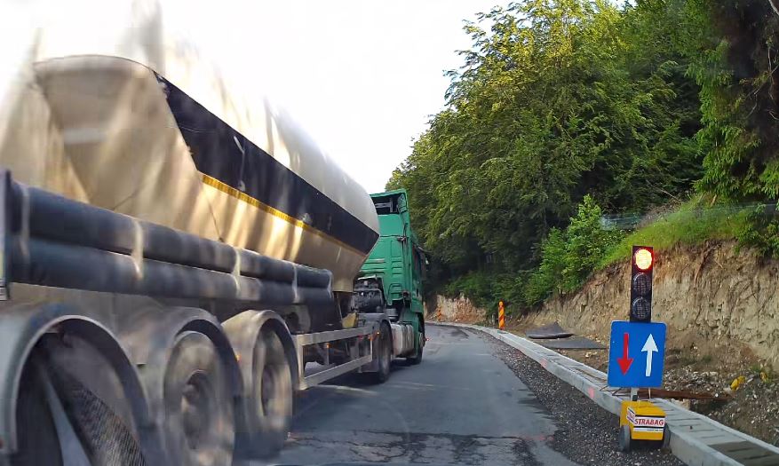 Un incident șocant a fost surprins în județul Cluj, unde un șofer profesionist, aflat la volanul unei cisterne, a fost filmat în timp ce ignora semaforul roșu instalat la o zonă de lucrări, punând în pericol ceilalți participanți la trafic. Mașina aflată în fața cisternei oprise regulamentar, dar acest lucru nu a fost suficient pentru a-l determina pe conducătorul auto al vehiculului de mare tonaj să respecte regulile de circulație. A intrat în viteză pe contrasens, a depășit și a trecut fără să ezite pe roșu.