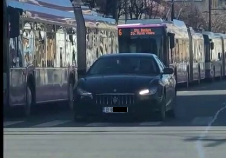 Șoferul unui bolid marca Maserati a fost filmat marți, la orele prânzului, pe Bulevardul 21 Decembrie 1989, pe interzis. Șoferul stătea lângă mijloacele de transport în comun, pentru a face dreapta spre Teatru.