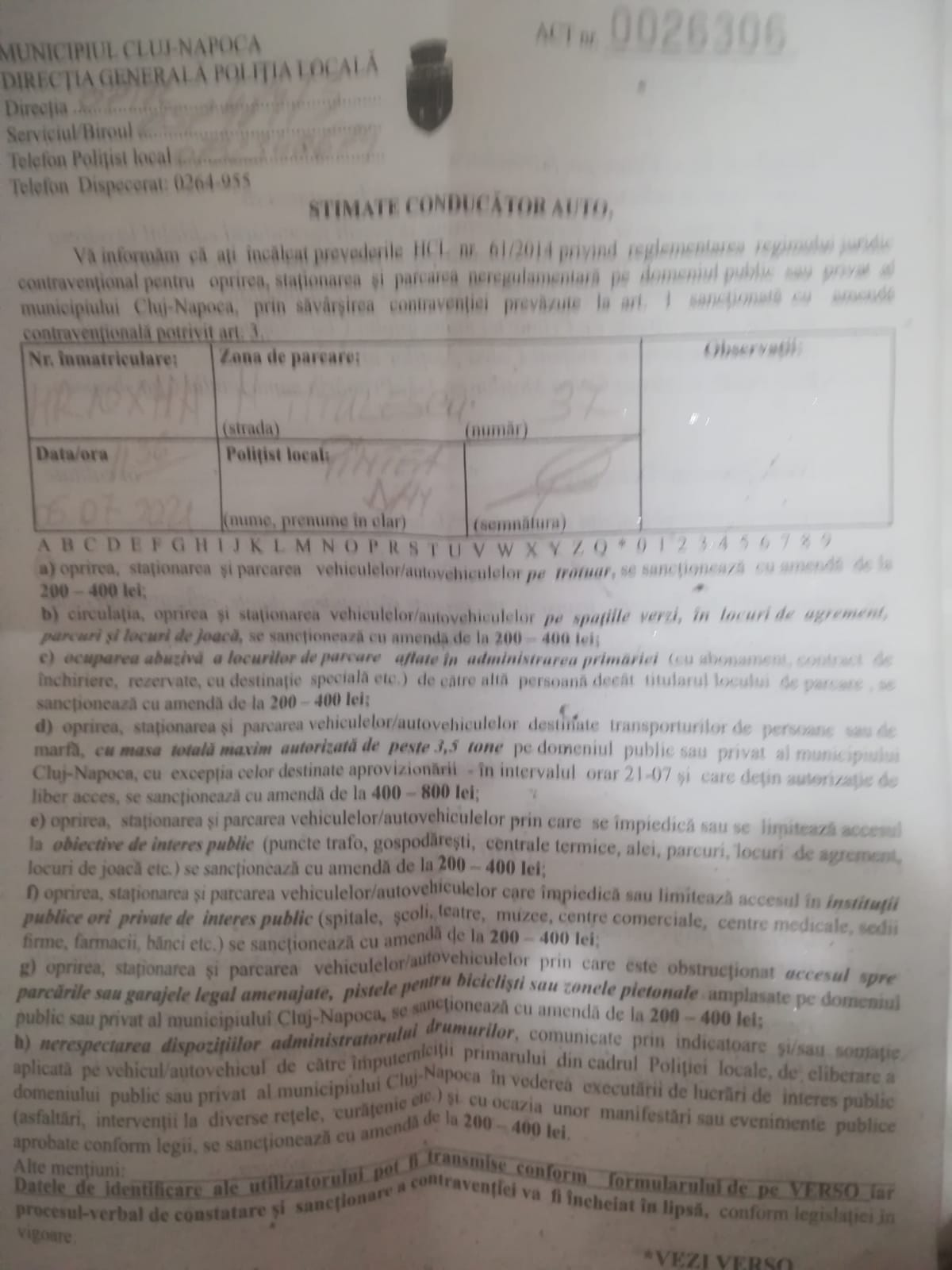 ”Eu am cerere pentru parcare de 3 ani și încă nu am primit parcare. Cineva stă în zona și o deranjează. Eu nu înțeleg de ce nu se respecta legea”, a mai spus conducătorul auto amendat.