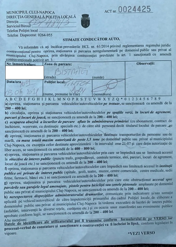 ”Ne-a trezit cu amenzi la toate mașinile parcate pe strada Bistriței. Este absolut incredibil cât tupeu pot avea cei de la Poliția Locală. Eu personal am depus cerere la Primărie pentru a primi un loc de parcare, dar mi s-a spus că nu sunt. Păi atunci de ce vin angajații domnului Boc să ne amendeze pentru că ocupăm trotuarul, parcați pe jumătate, așa cum se întâmplă de zeci de ani?