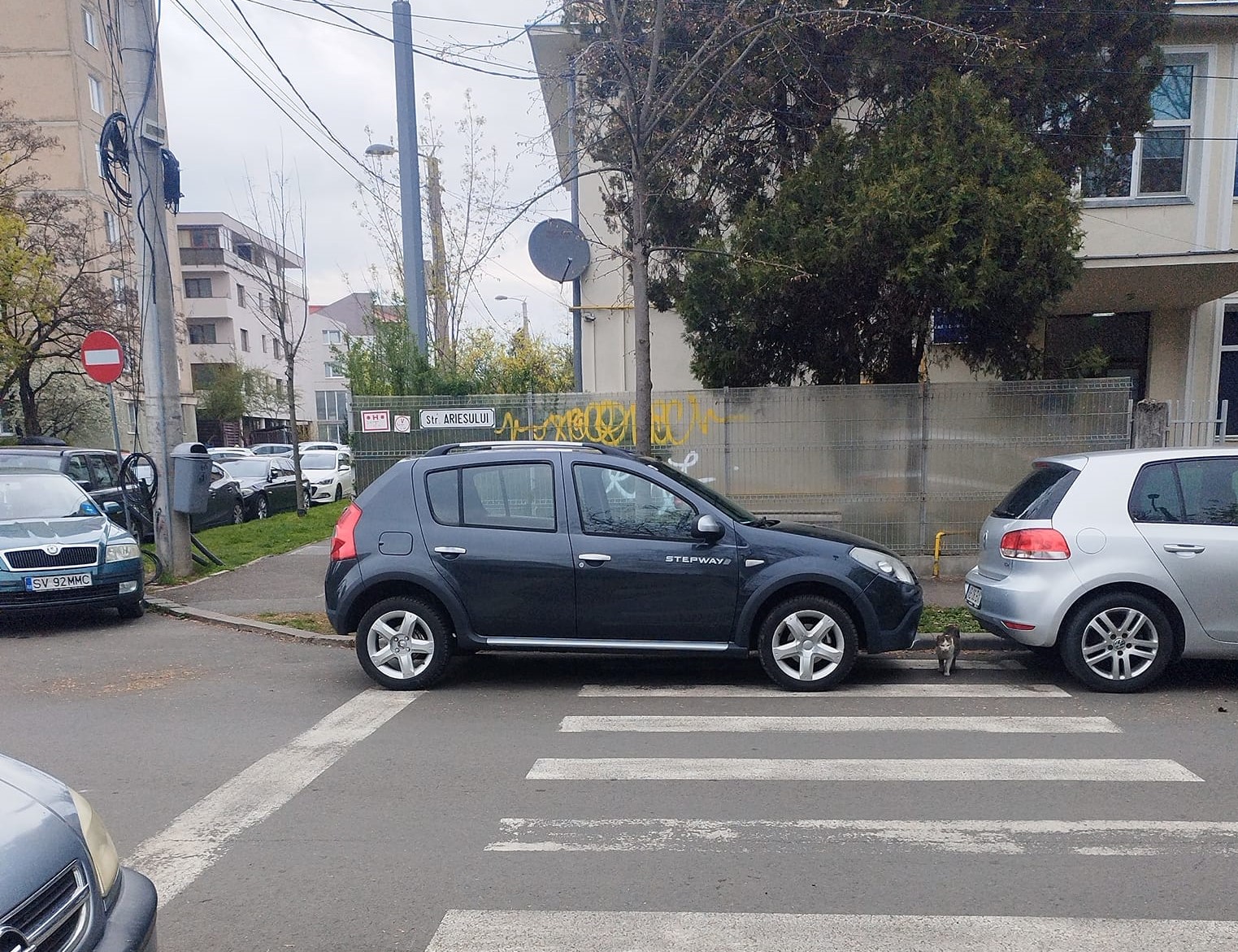 Un șofer „rebel” a decis să-și lase mașina marca Dacia Sandero chiar pe o trecere de pietoni din Cluj-Napoca, la intersecția străzilor.