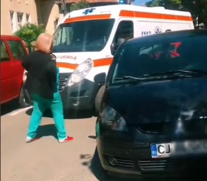Șoferiță inconștientă a blocat ieșirea ambulanței la Cluj. Echipajul s-a dat jos să-și croiască drum: „Mor oamenii cu zile că nu ajunge Ambulanța” VIDEO