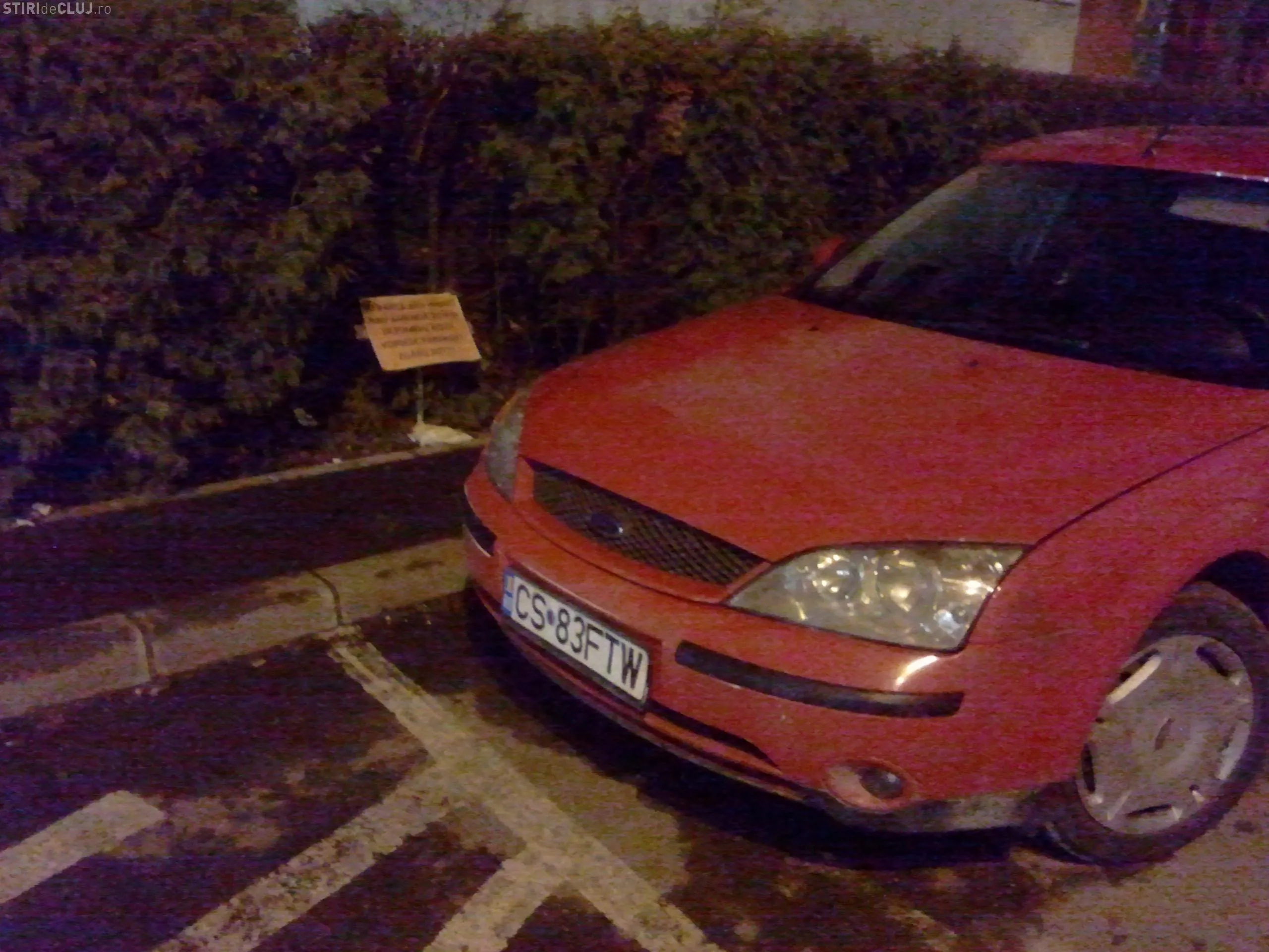 Interesant este că mașina parcată pe locul ”protajat” de șofer este înmatriculată în Caraș-Severin, având pe parbriz un abonament de parcare eliberat de Primăria Cluj-Napoca.