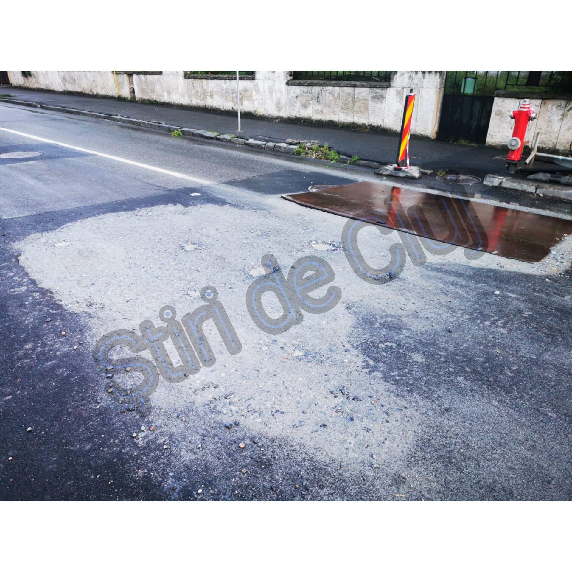 Soluție de ”cinci stele” pentru strada din Cluj unde s-a surpat asfaltul. Au pus o tablă, iar pe sensul opus au umplut cum au putut! VIDEO