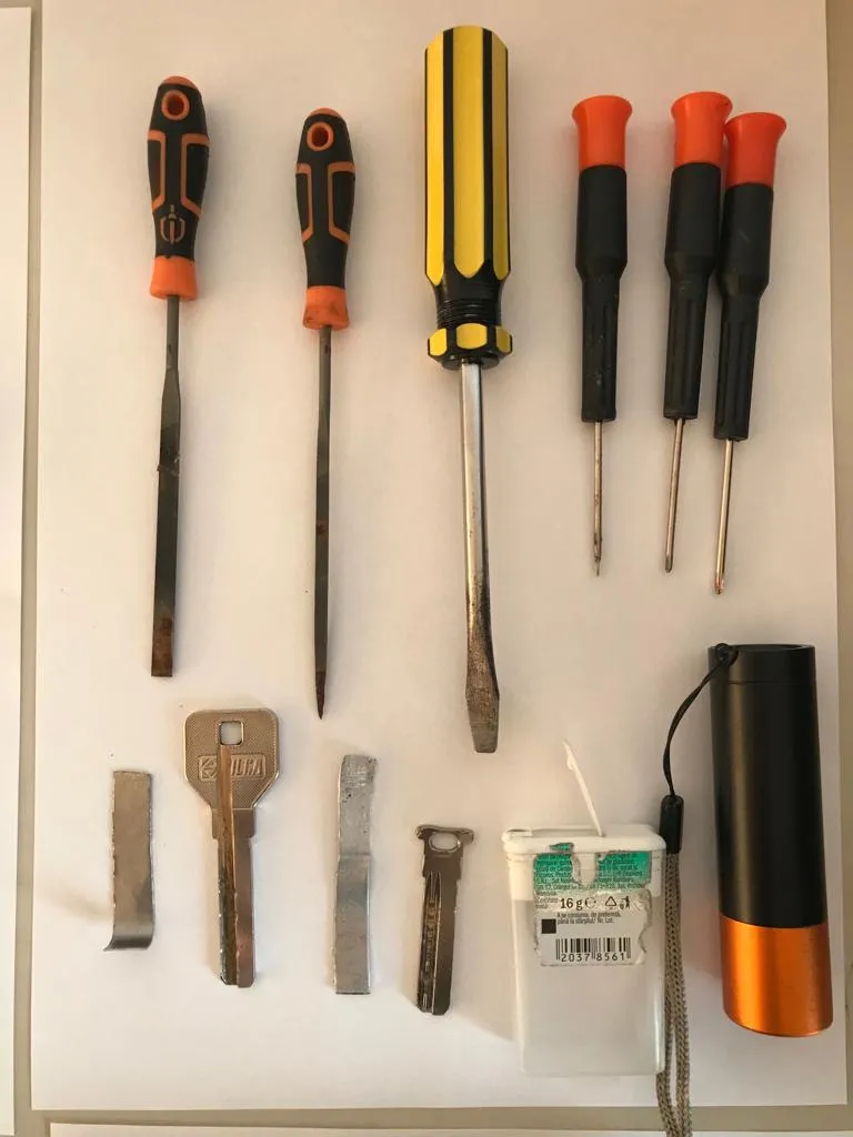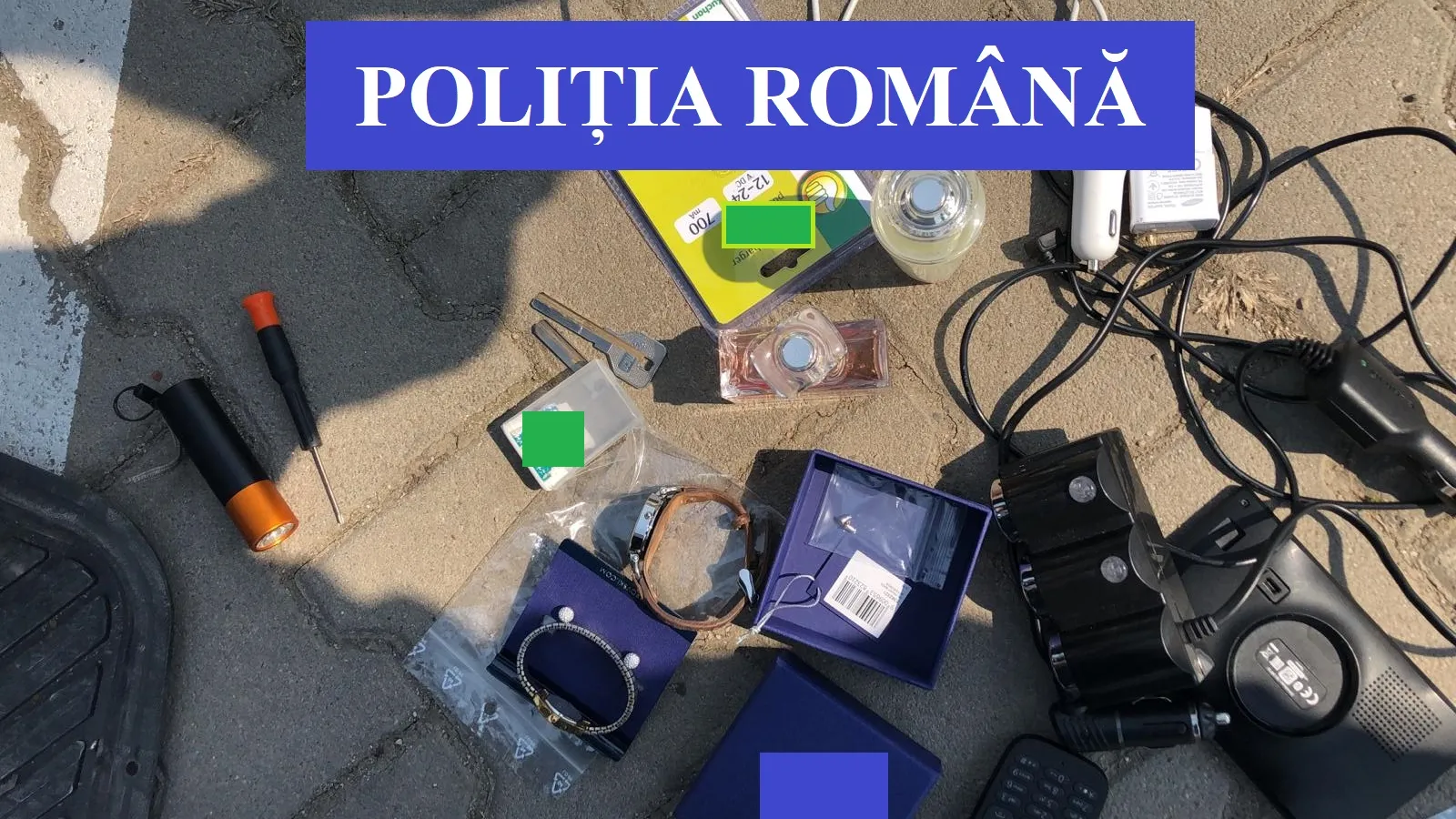 În urma percheziției autoturismului cu care se deplasau, au fost găsite mai multe bunuri care ar fi fost sustrase, precum: bijuterii, ceasuri, terminale mobile, casete pentru bijuterii, aparatură electronică, recipiente cu parfum, instrumente de spargere.