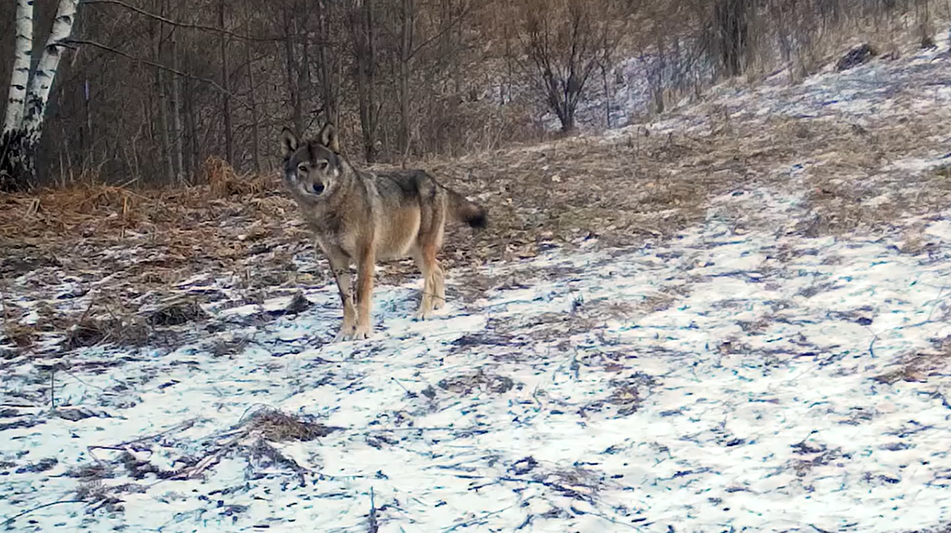 Un cadru de basm a fost surprins în Parcul Natural Apuseni. Un lup și o lupoaică gestantă au fost filmați în timp ce se plimbau printr-o pădure, încercând să caute hrană.