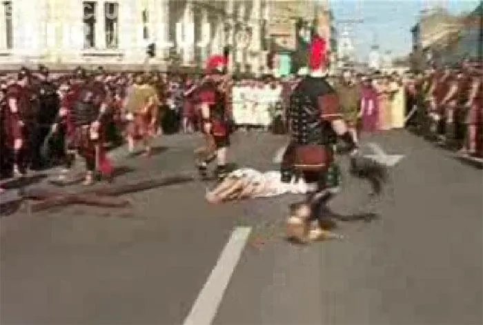 Spectacol religios la Cluj. Drumul Crucii a fost refacut de un grup de tineri prin centrul orasului - VIDEO