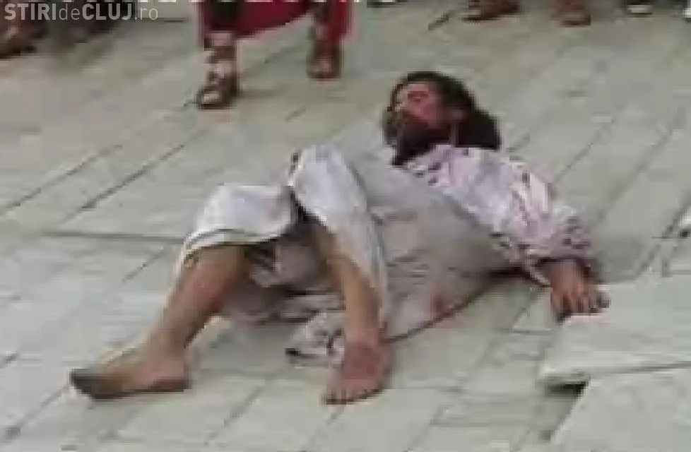 Drumul Crucii a fost refacut prin centrul municipiului Cluj-Napoca, intr-o procesiune organizata de o biserica Evanghelica. Tinerii vestimentati in romani l-au escortat pe Iisus pana in locul unde s-a jucat scena rastignirii.