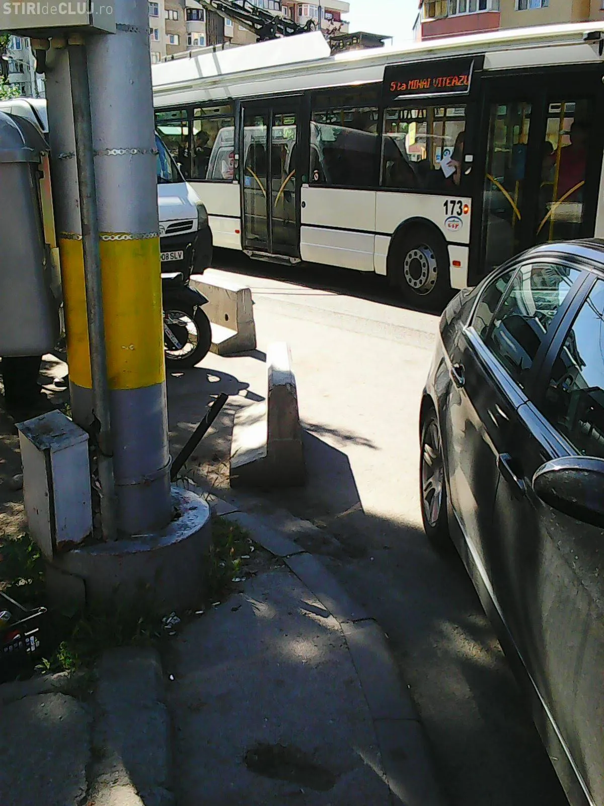 Dezordinea a revenit în stația de autobuz din Mărăști, după numai un an de la montarea de către Primăria Cluj-Napoca a unor parapeți din beton și interzicerea parcării acolo.