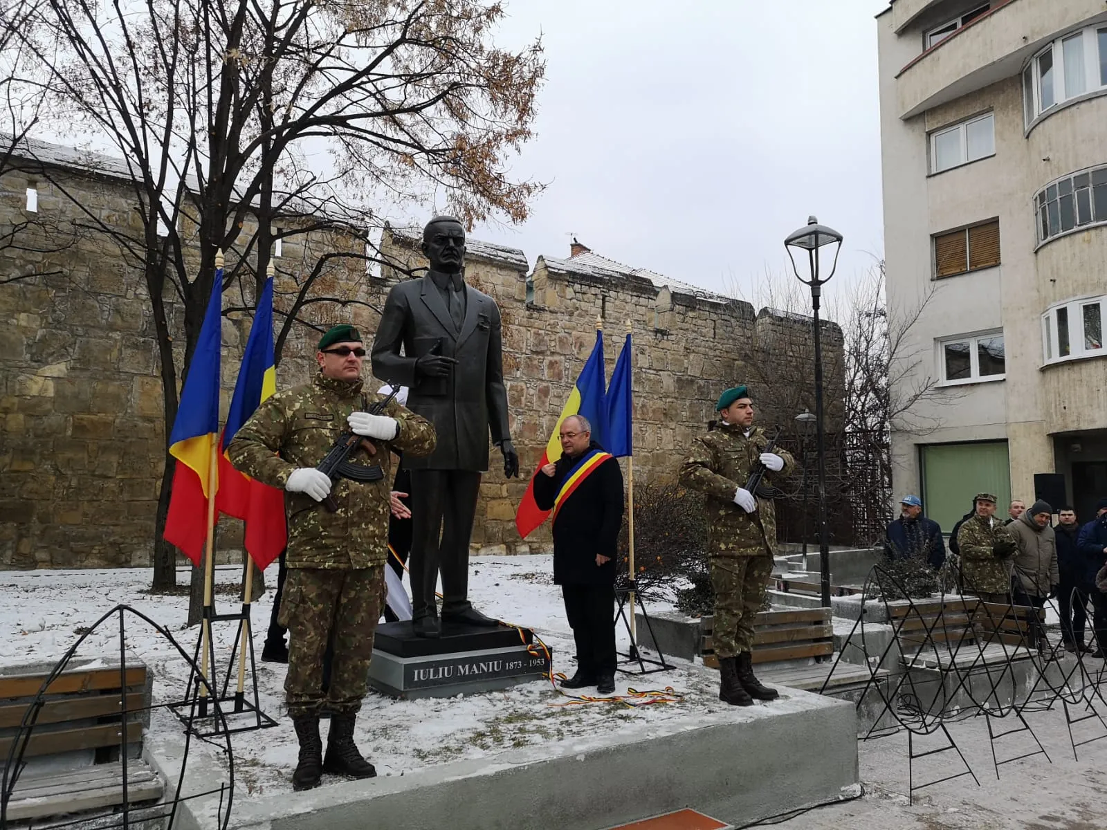 Statuia lui Iuliu Maniu a fost dezvelită în Piaţa Ştefan cel Mare din Cluj-Napoca, fiind opera sculptorului Ioan Marchiş.