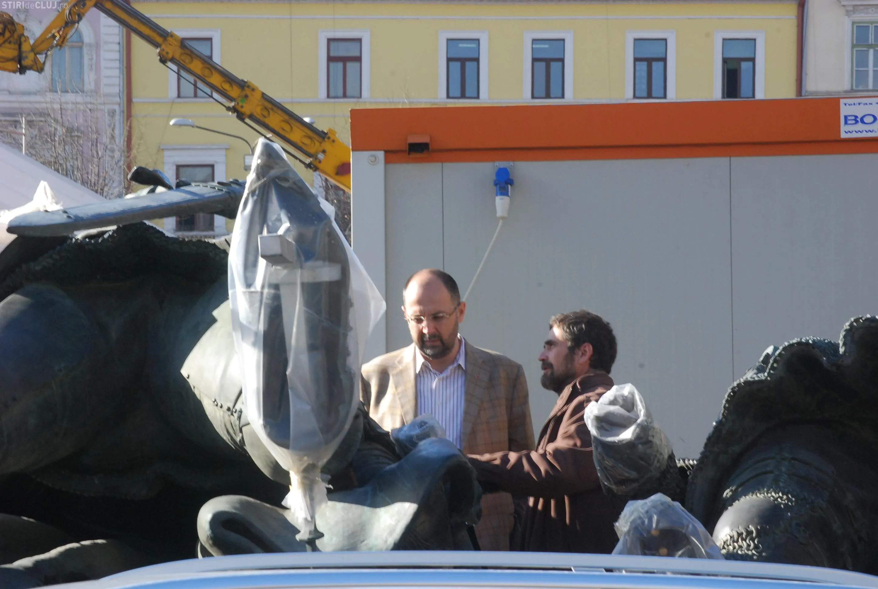 Grupul statuar Matei Corvin a fost vizitat astazi de ministrul Culturii, Kelemen Hunor. Oficialul a discutat cu echipa care conduce lucrarile de restaurare.