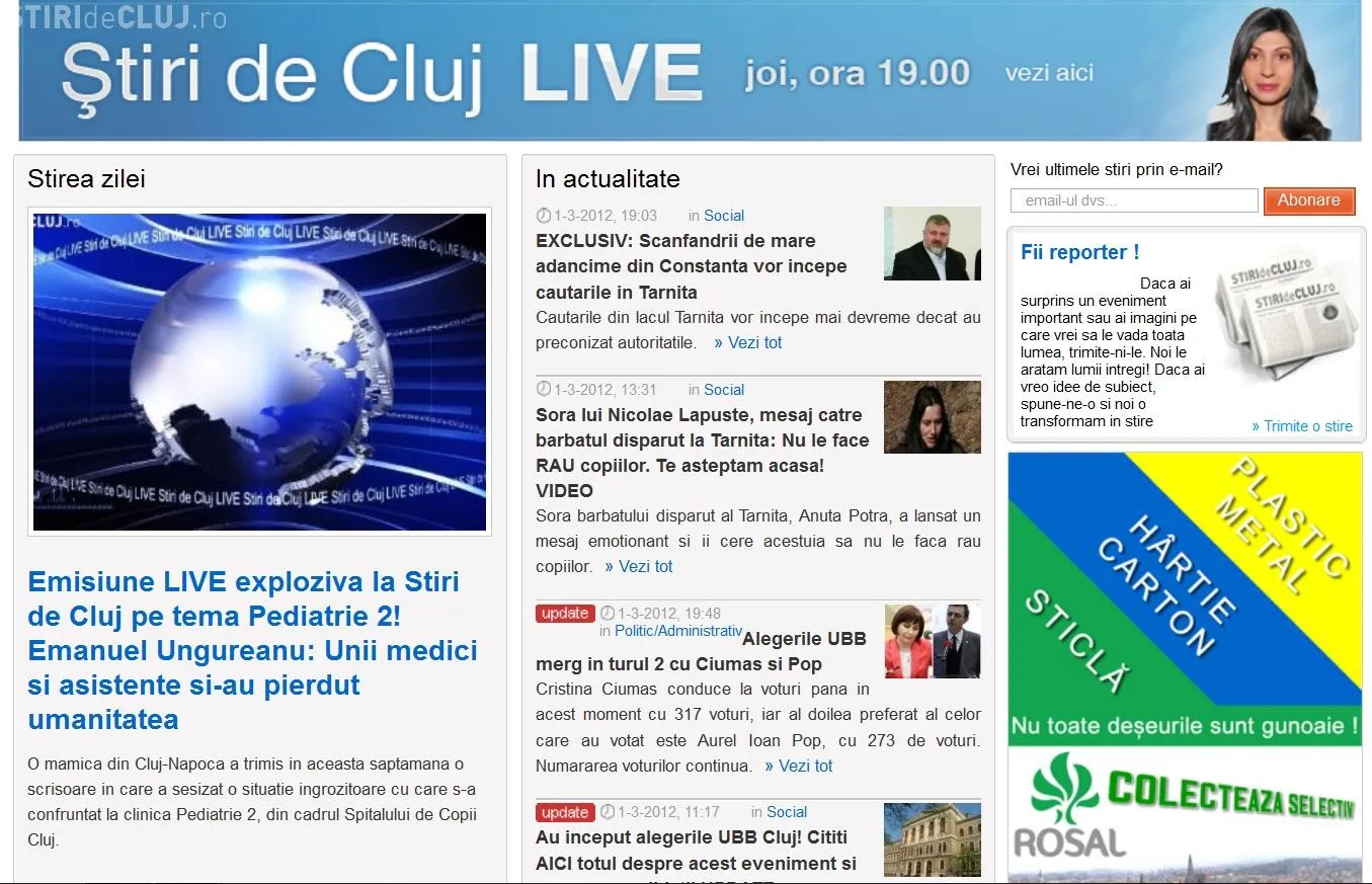 Stiri de Cluj, cel mai citit site regional din Romania, cu peste 30.000 de cititori unici inregistrati ieri