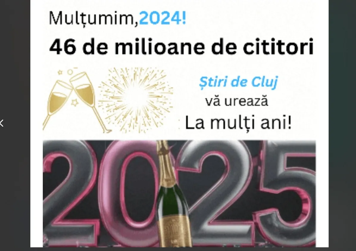 Știri de Cluj nu ar fi fost ce este astăzi fără voi. Pentru toți cei 46.391.498 de cititori care au fost alături de noi în 2024, vă mulțumim din inimă!