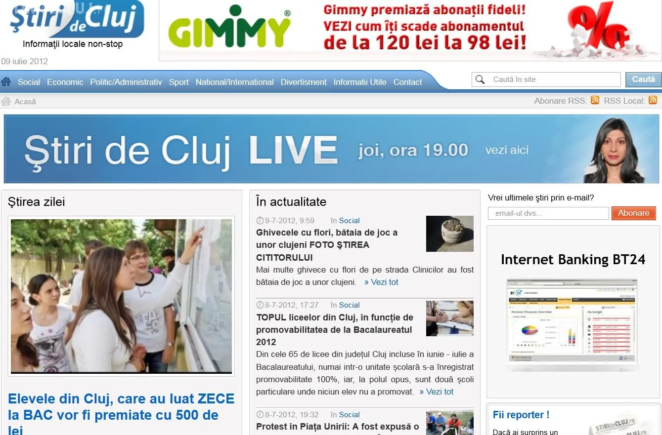 O serie de știri publicate de Știri de Cluj, rapid și prompt, au adunat fiecare aproape 10.000 de citiri: TOPUL liceelor din Cluj, în funcție de promovabilitatea de la Bacalaureatul 2012 , BAC CLUJ 2012: Două licee au promovabilitate ZERO. Vezi care sunt cele mai SLABE licee din Cluj.