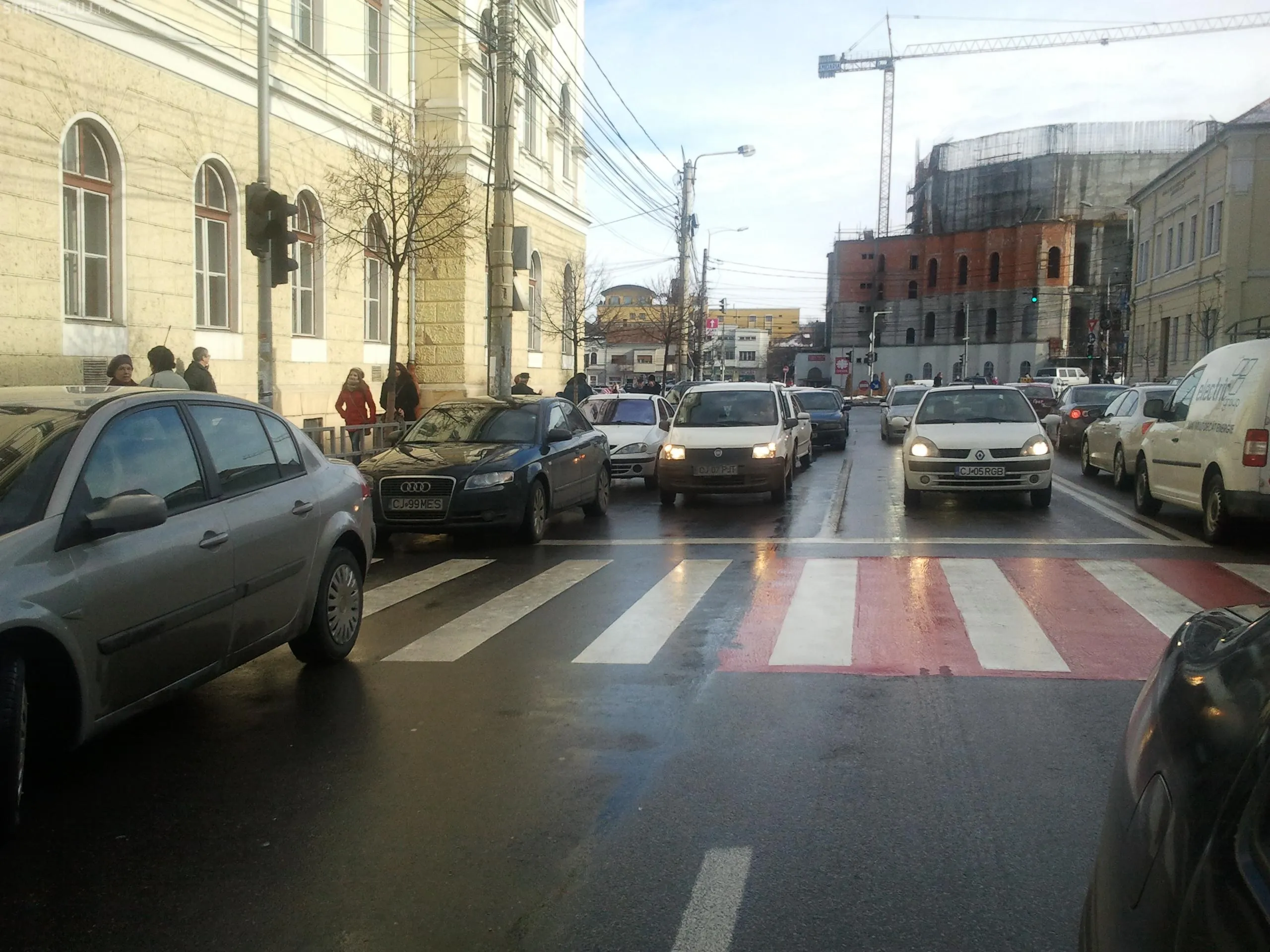 Strada Avram Iancu se transformă la ora amiezii în parcare publică. Mașinile staționează pe banda 1, în așteptarea elevilor care ies de la liceele Gheorghe Șincai și George Coșbuc.
