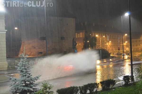 Strada Avram Iancu, proaspăt reabilitată în cadrul programului Clujul Orașul Comoară, nu pare să fi rezistat prea bine primului test de ploaie.