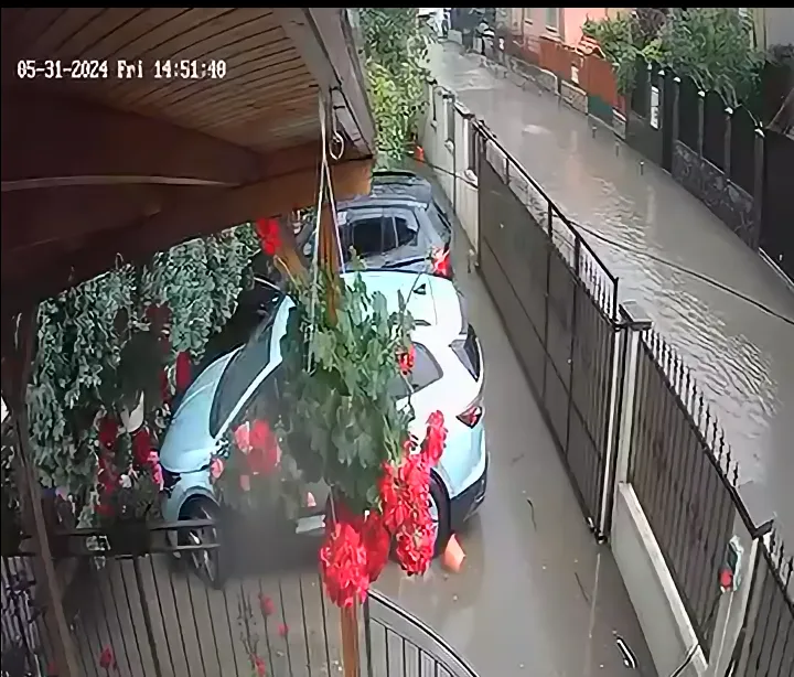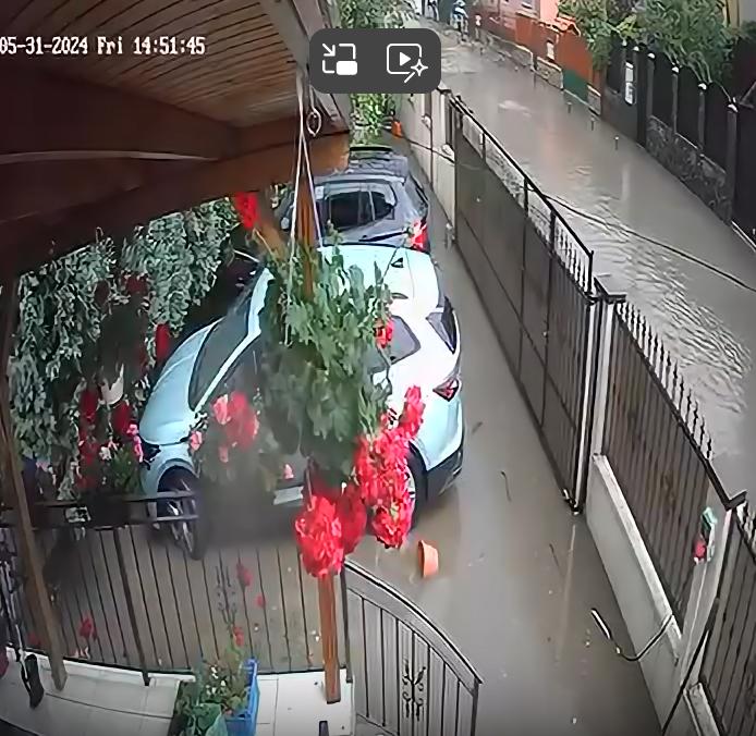 Locuitorii din zonă au distribuit pe rețelele de socializare videoclipuri care surprind dimensiunea dezastrului. Imaginile arată mașini în apă și curți inundate.
