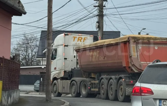 Stradă distrusă de camioane la Cluj-Napoca! Locuitorii acuză autoritățile: „Tot traficul greu a fost mutat aici”